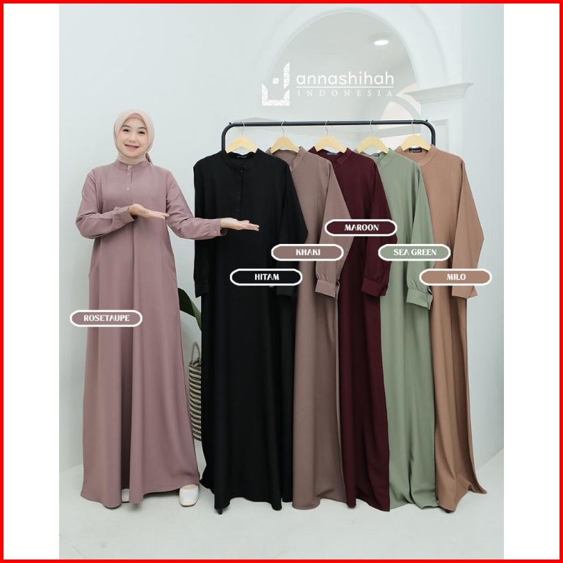 Hitam, Khaky, Bronze, Maron, Navy, Rosybrown, Milo, Olive, Biru dongker, Sea green, Stone, Stell, Moca, Lilac, Black, Abu monyet, Denim, Plum, Erina tosca, Annashihah Random, Spruce, Coral, Hijau kacang, Army, Burgundy, Hijau lumut, Merah hati, Pink baby, Teracotta, Hijau army, Biru SMA, Rosetaupe, Taro