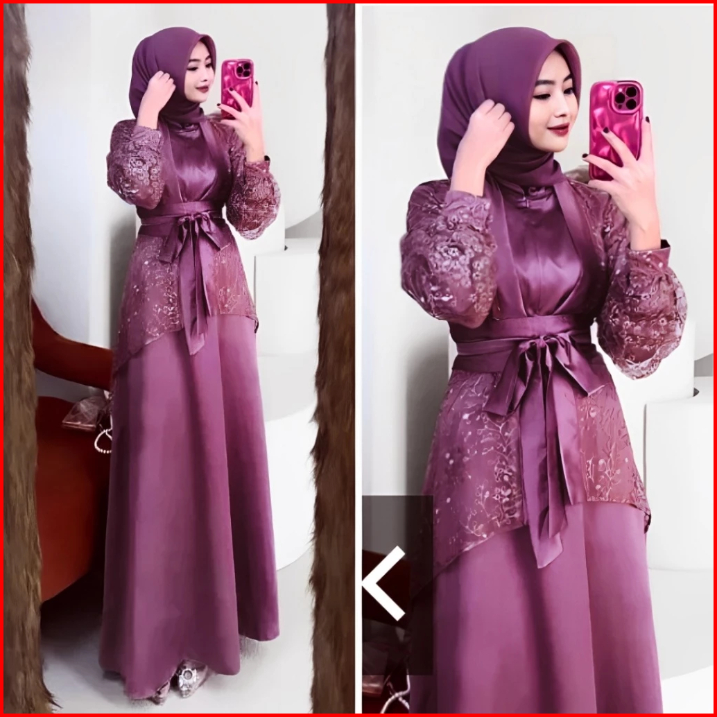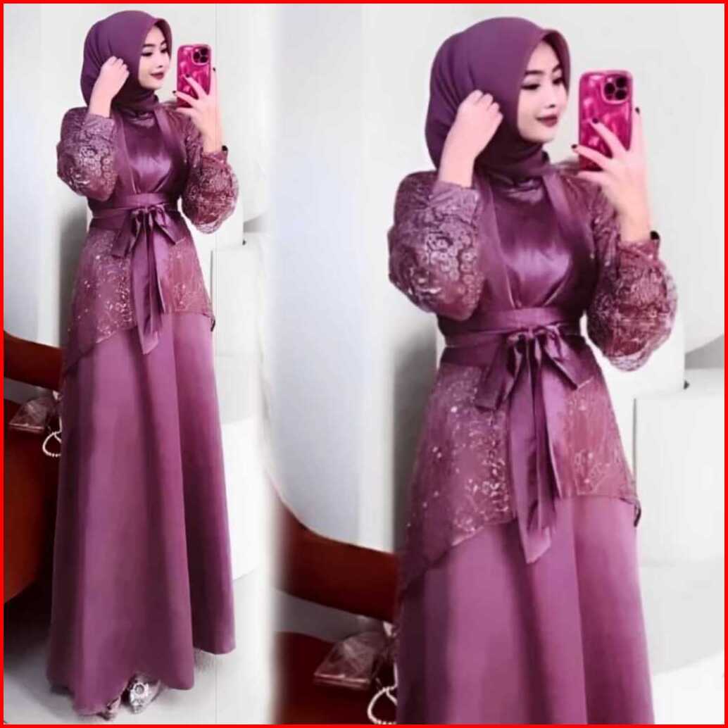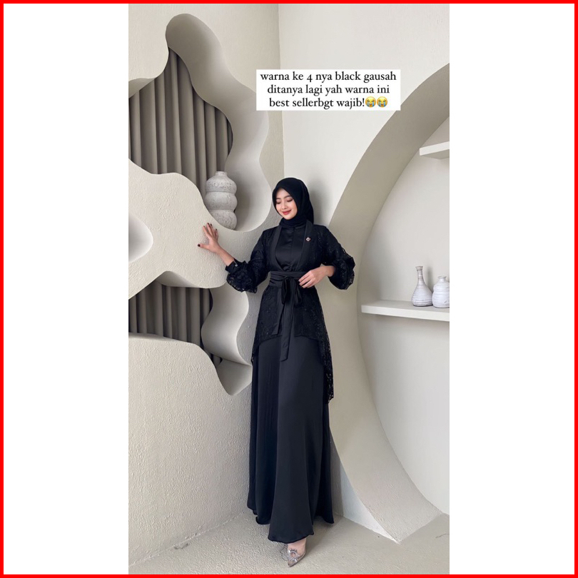 Ready Jumbo - Fuji Dress Satu Set Inner Outer Kimono Free Belt Gamis Lebaran 2024 Model Gamis Terbaru Queenbee Fashion D