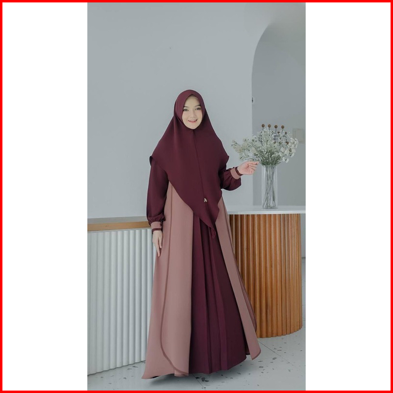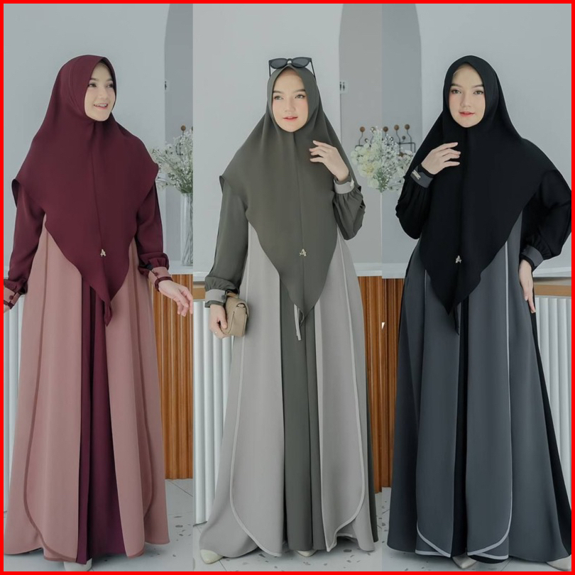 Gamis Set Hijab Syari Terbaru Super Mewah Variasi Cantik Model Terbaru Simple Elegan Viona Syari
