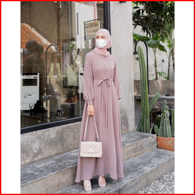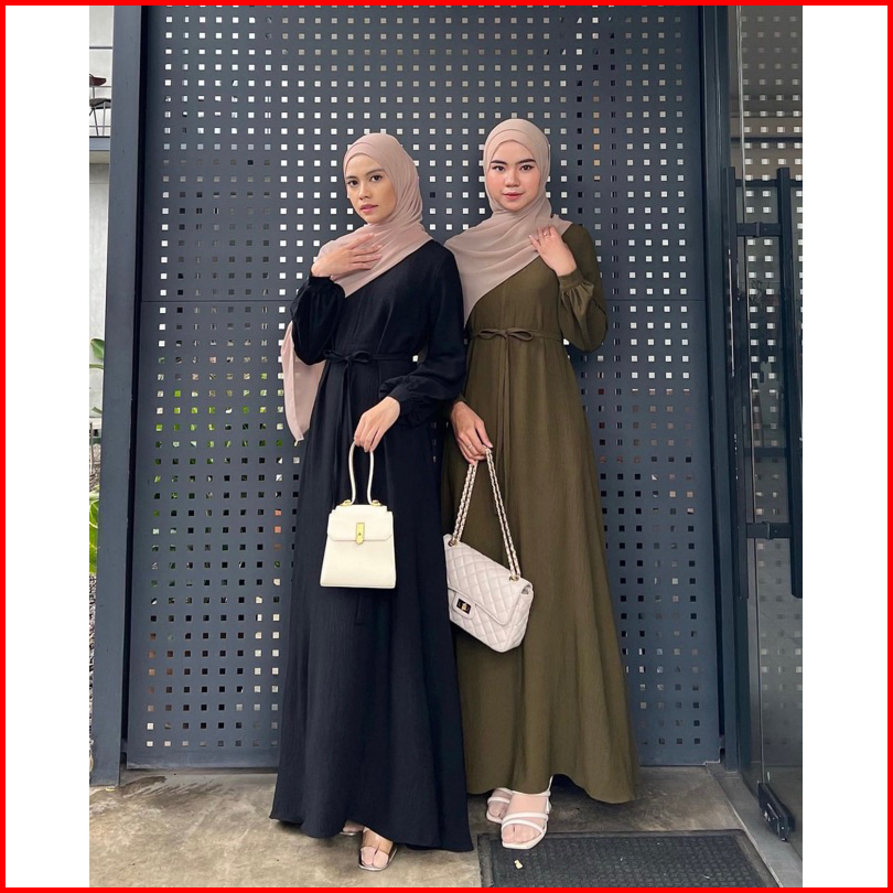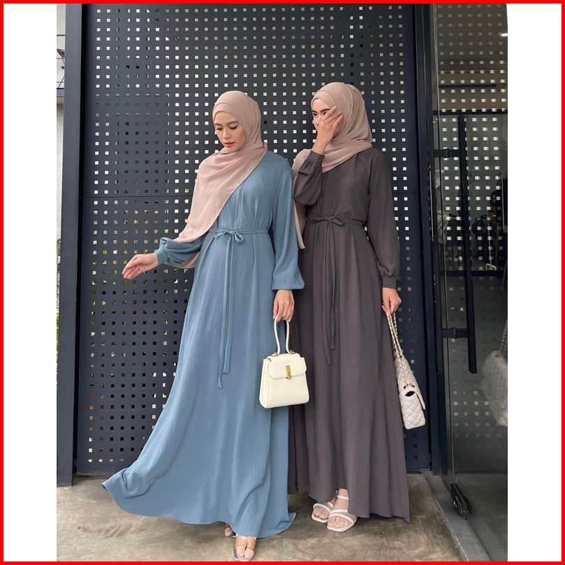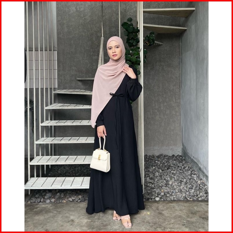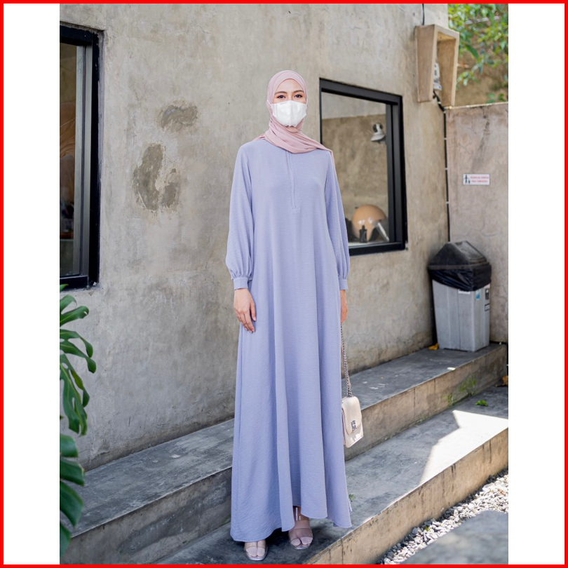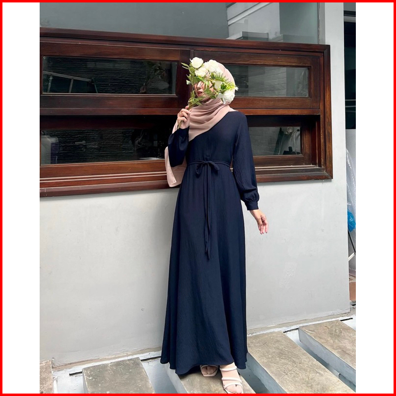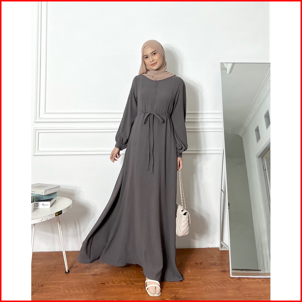 Dafinty - Hana Dress Bahan Premium Crinkle Airflow Gamis Wanita Terbaru Basic Simpel Elegan