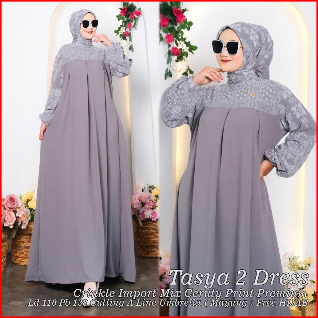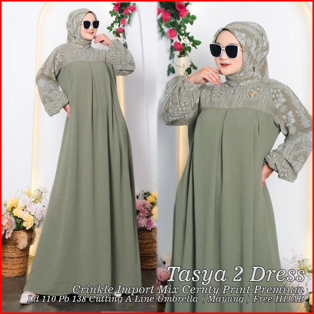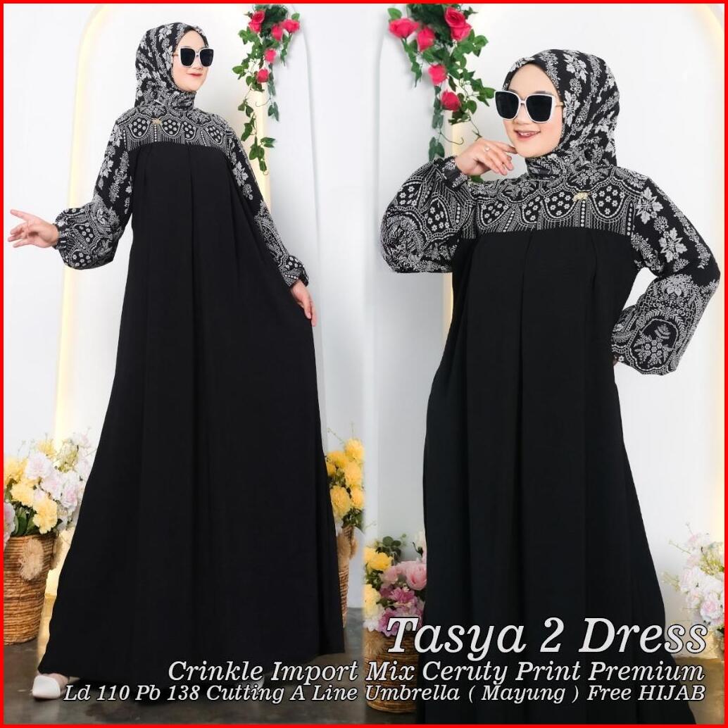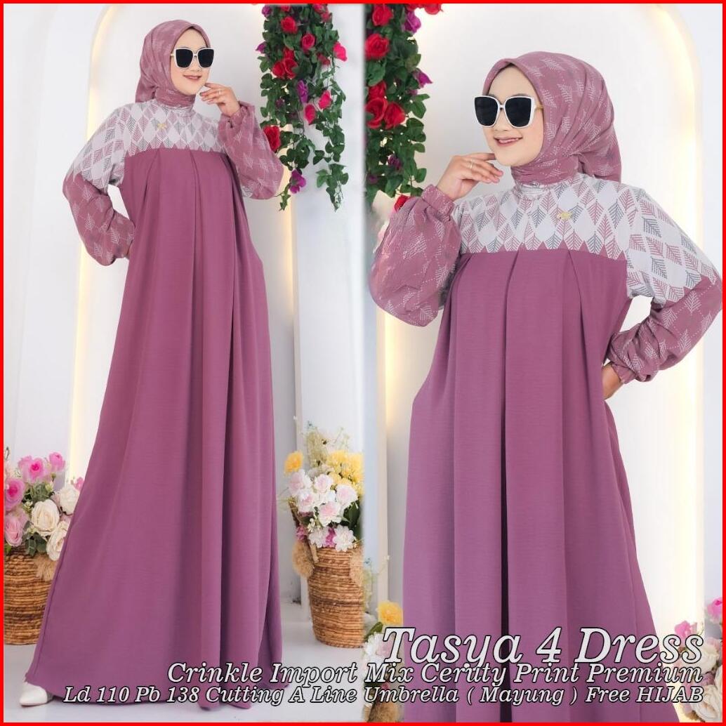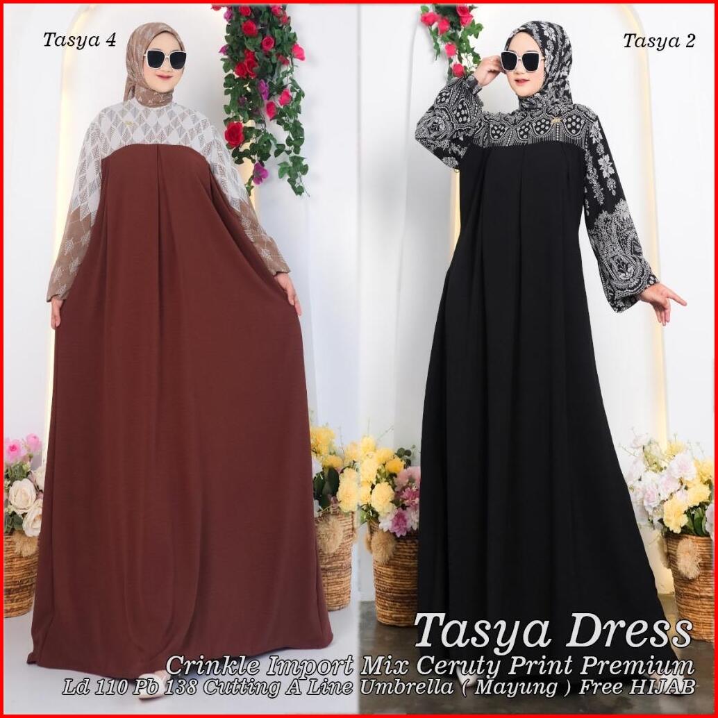 Tasya Dress Free Hijab Segi Empat Crinkle Import Mix Ceruty Print Premium Busui Dan Wudhu Friendly
