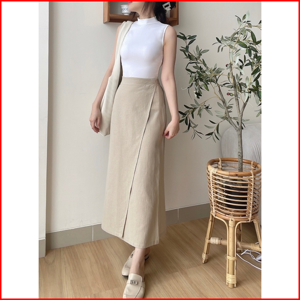 Kadaka B-0203 Midi Skirt Linen Rok Layer Korean Wanita