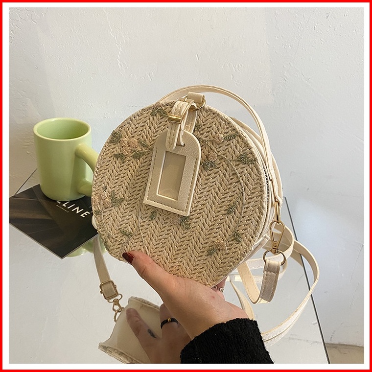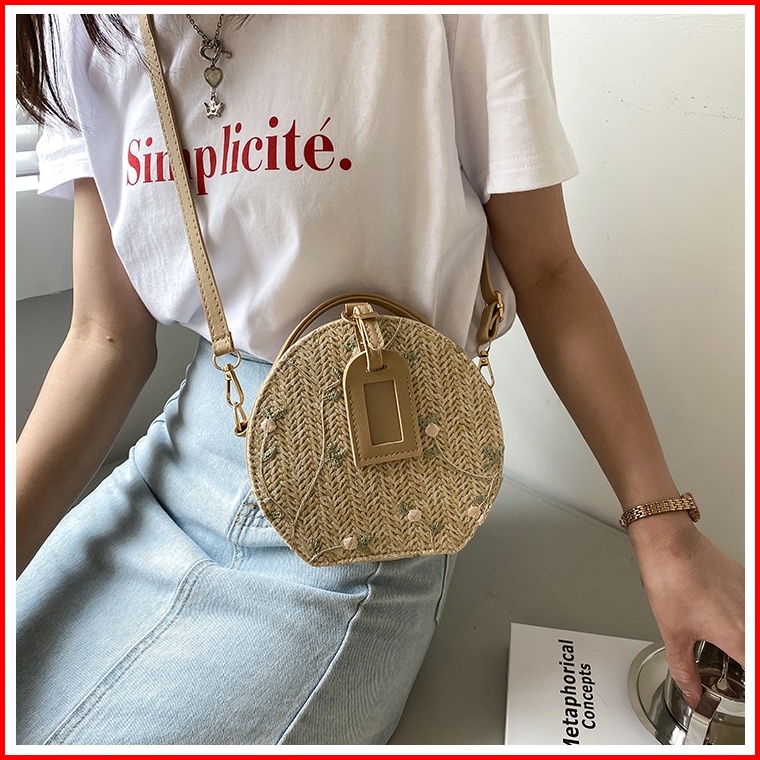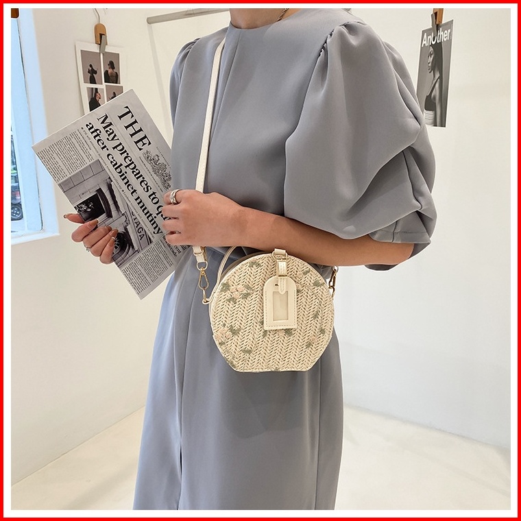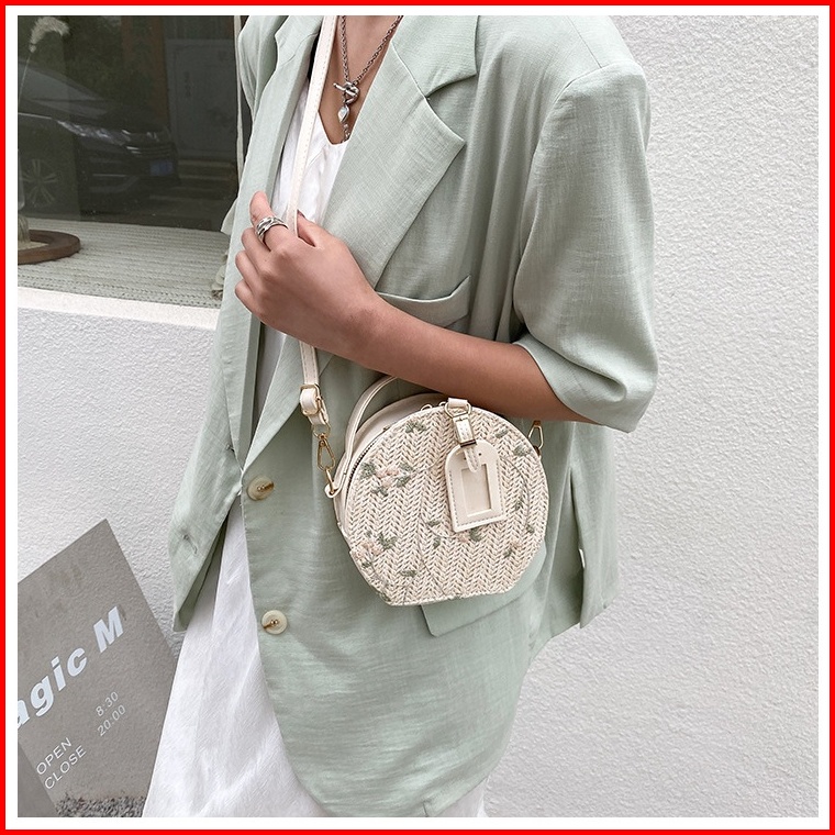 Bao028 Tas Selempang Kulit Bahan Anyaman Motif Bunga Aster Dan Lace Gaya Tas Selempang Wanita Tas Model Korea Tas Casual