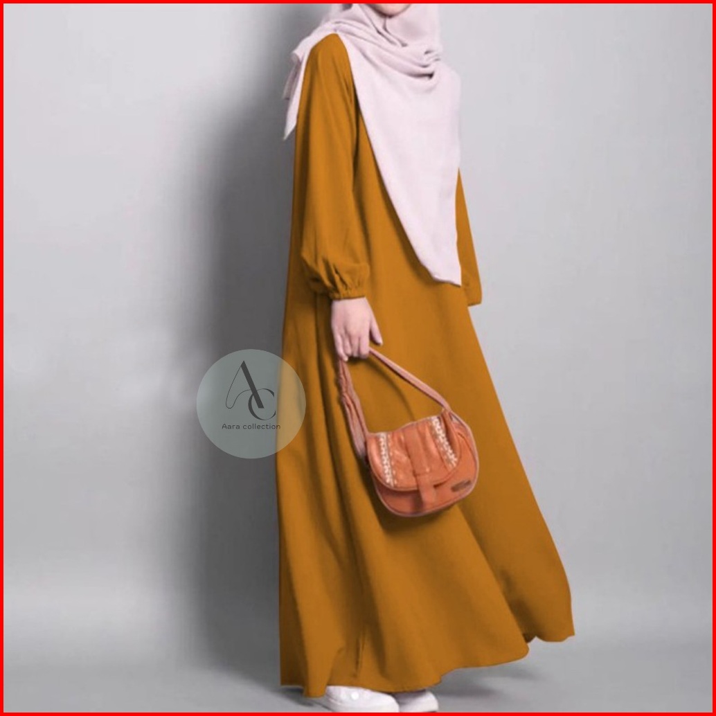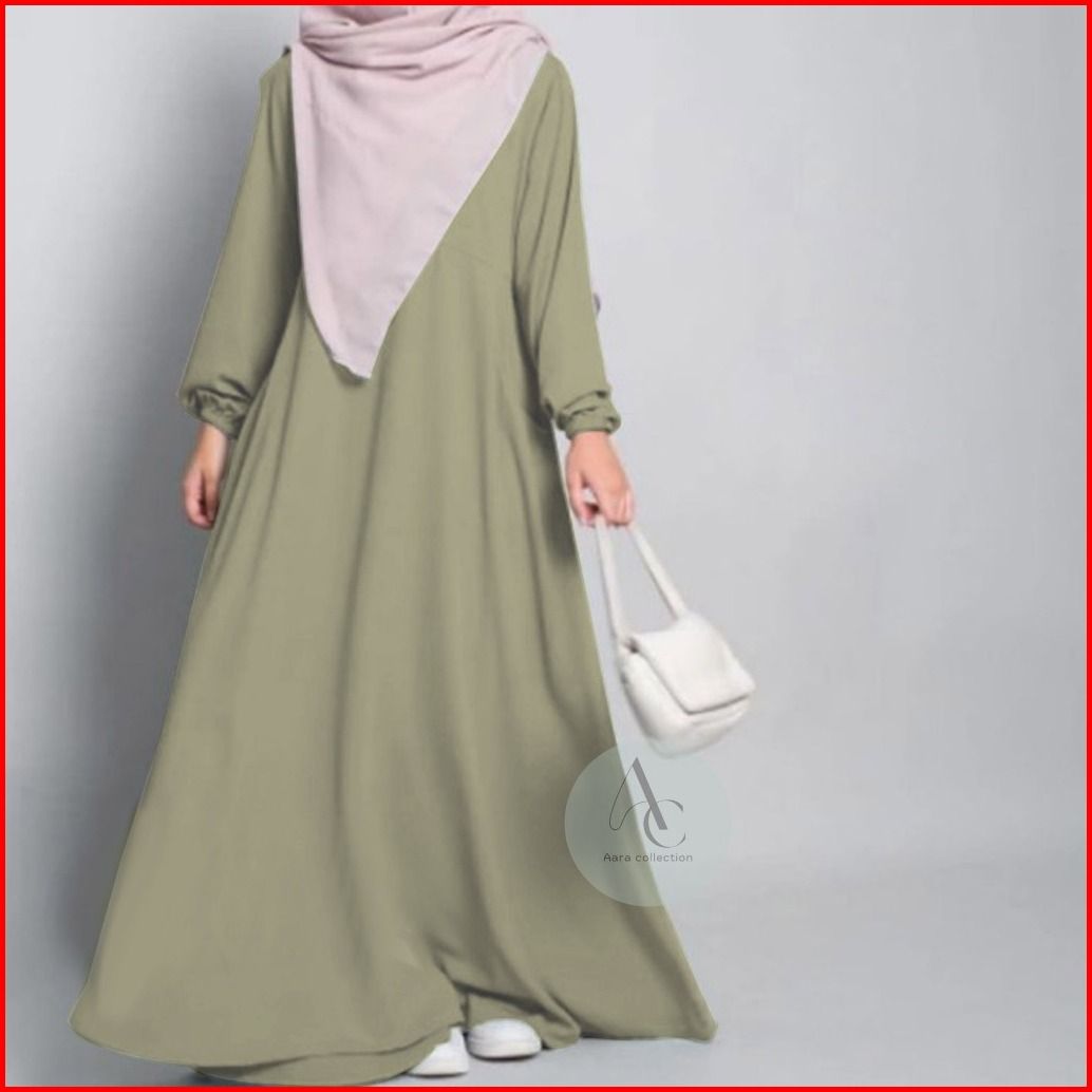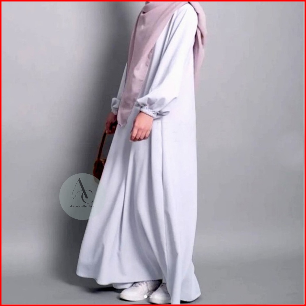 Aara Baju Gamis Abaya Lengan Karet Polos Terbaru Wolpis Premium