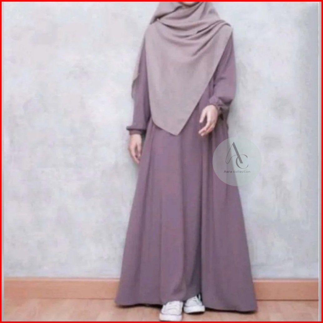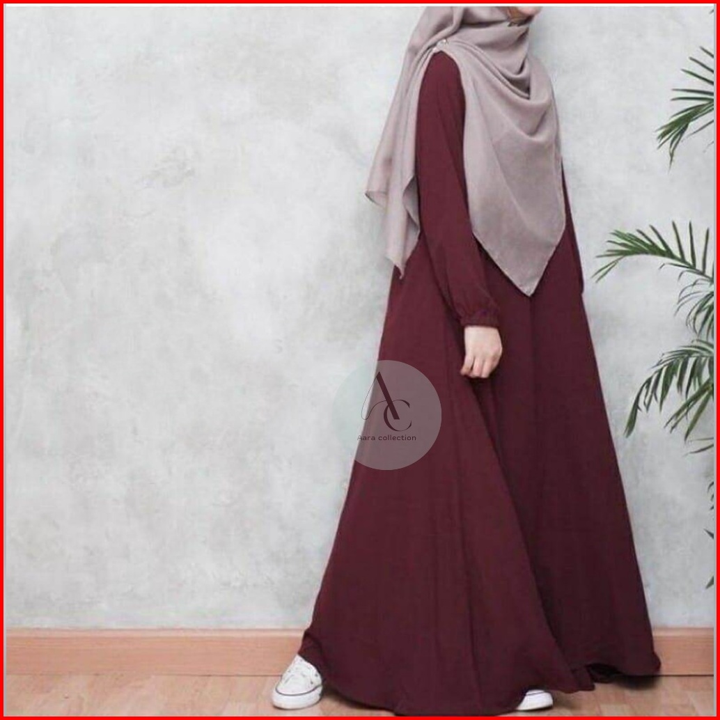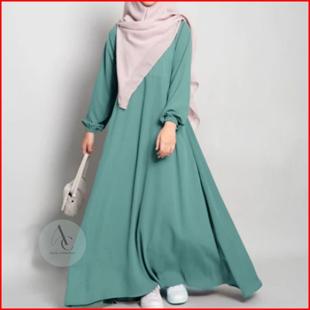 Aara Baju Gamis Abaya Lengan Karet Polos Terbaru Wolpis Premium