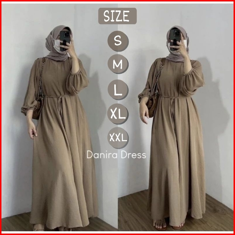 Size S M L Xl Xxl Danira Dress Remaja Perempuan Terbaru Kekinian Gamis Wanita Serut Polos Crincle Airflow