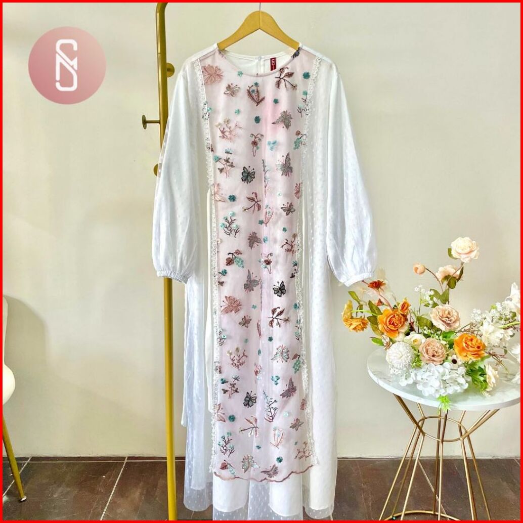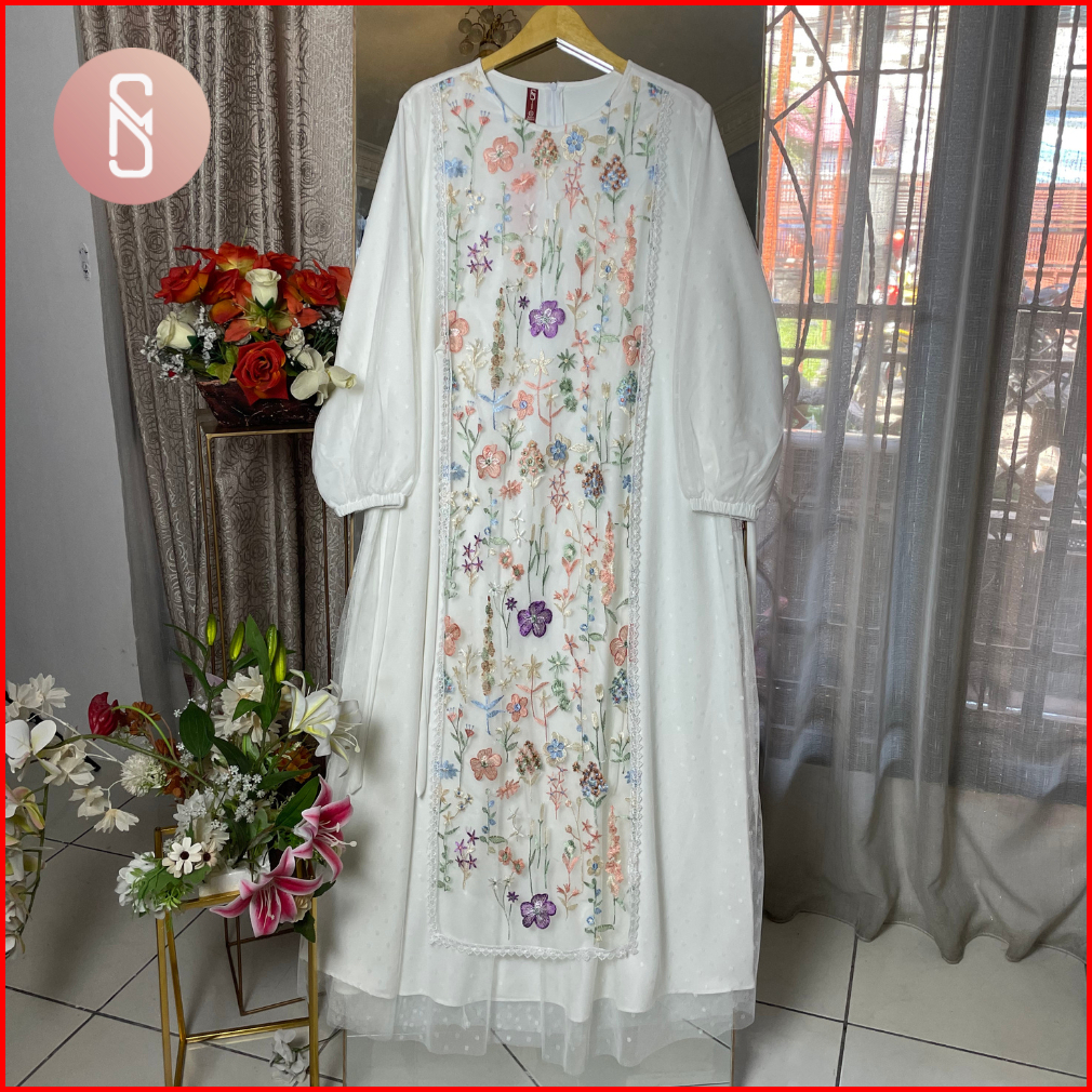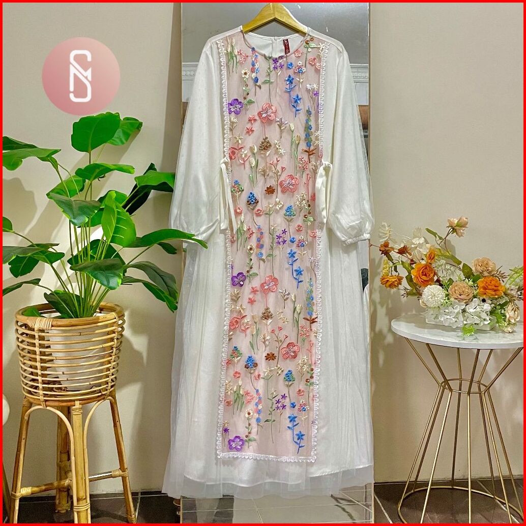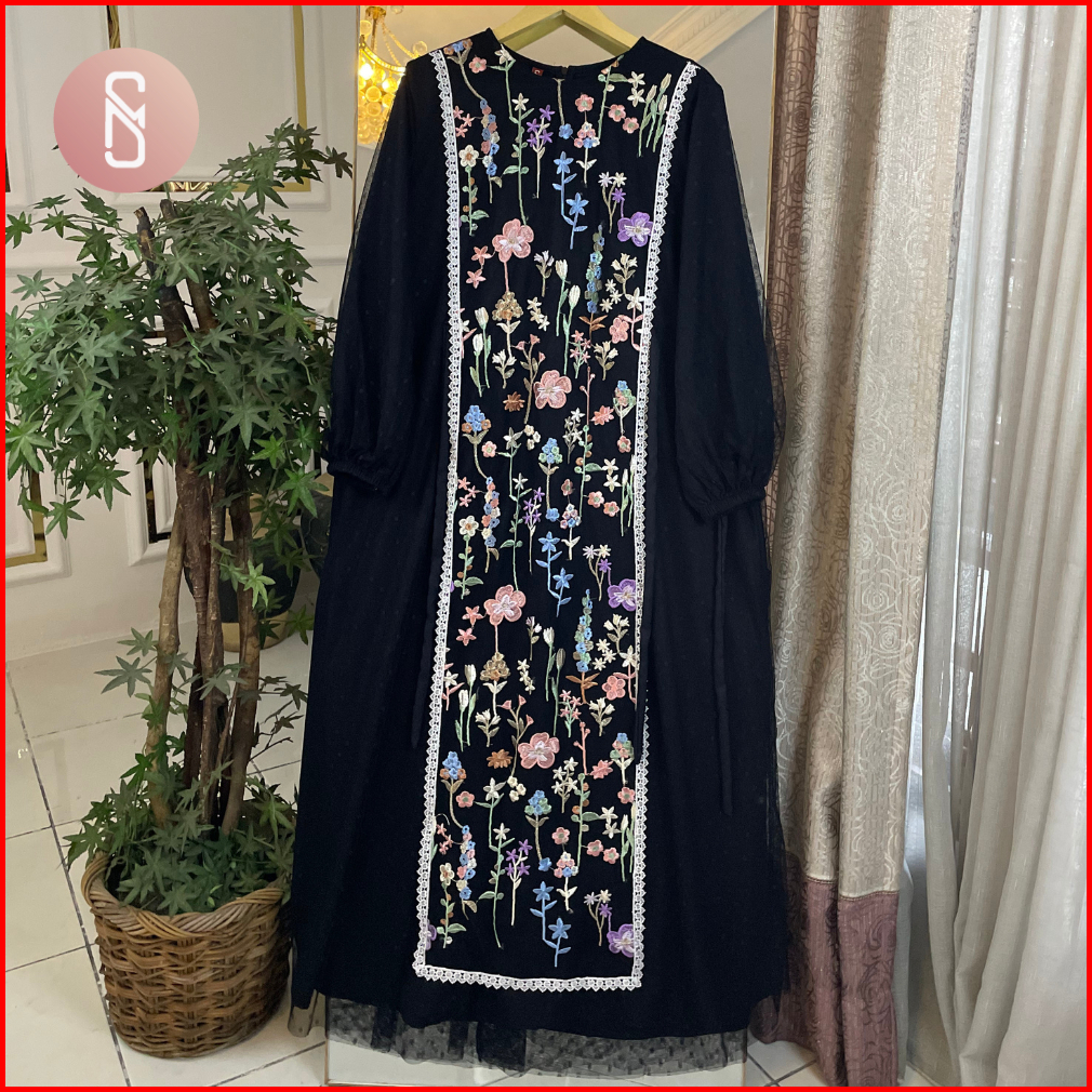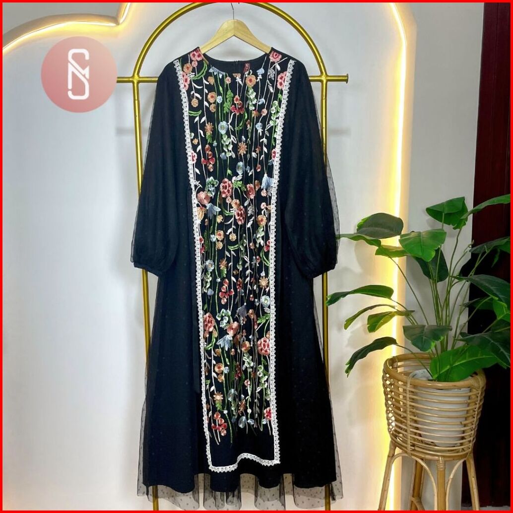 Oriana New Myshawl Gamis Jumbo Tille Motif Kasual Kondangan Wisuda Kekinian Big Size Brukat Bunga Jumbo