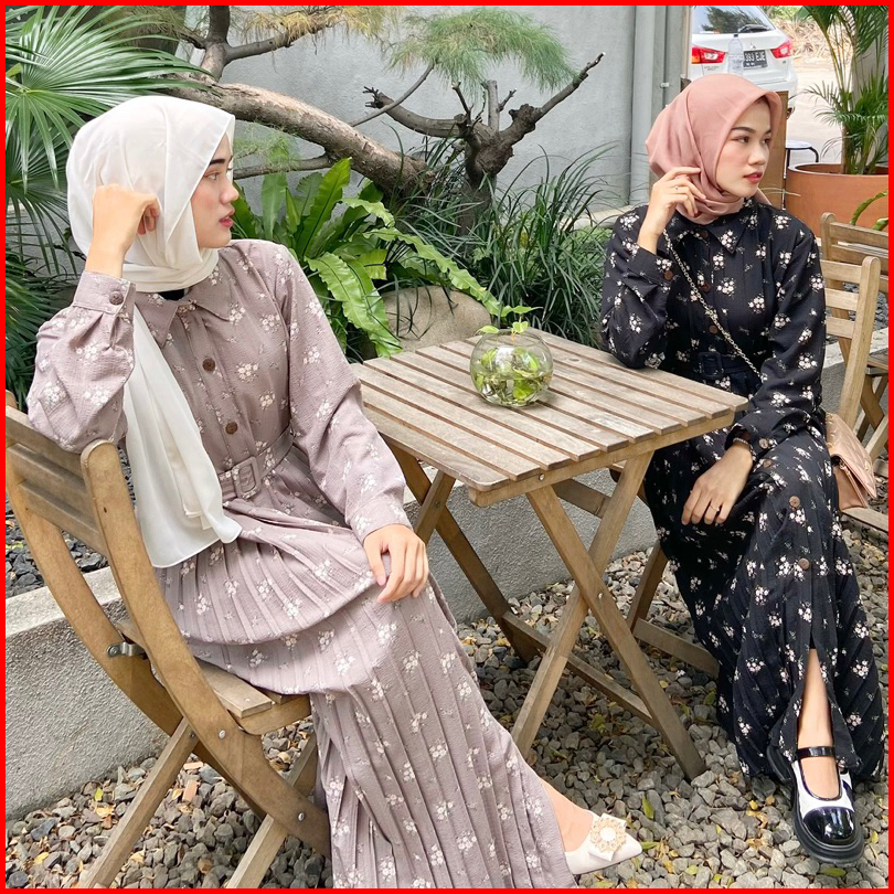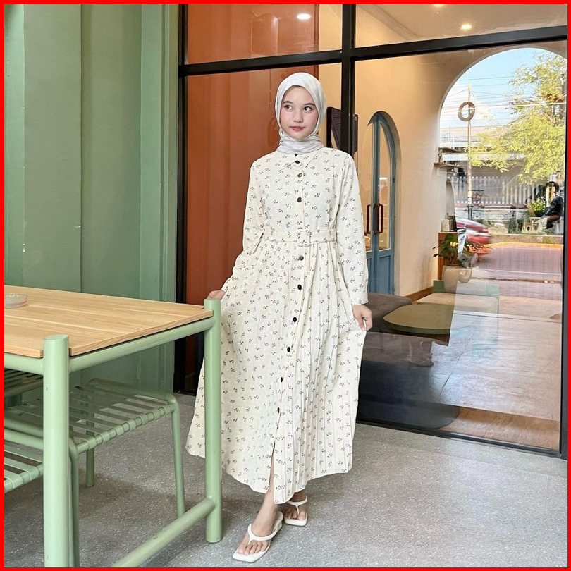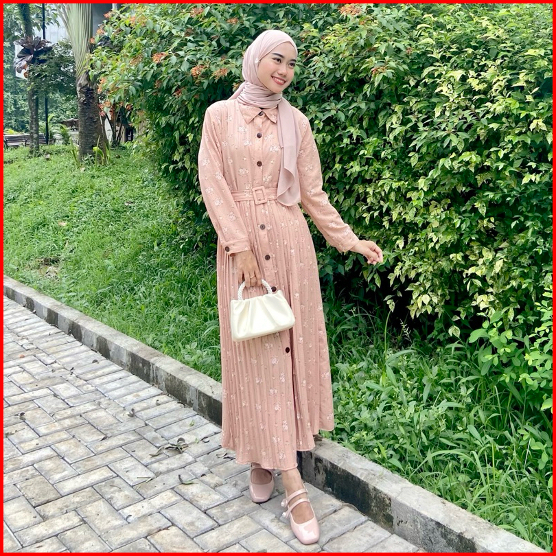 Pionee Dress Plisket Gamis Bunga Daily Crinkle Premium Korea By Meeclo