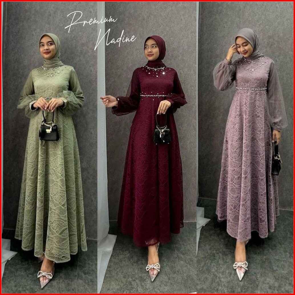New Salwa Nadine Dress Exclusive Terbaru Gamis Brukat Maxi Pesta Kondangan Lamaran Tunangan Kekinian Gamis Muslim Baju L