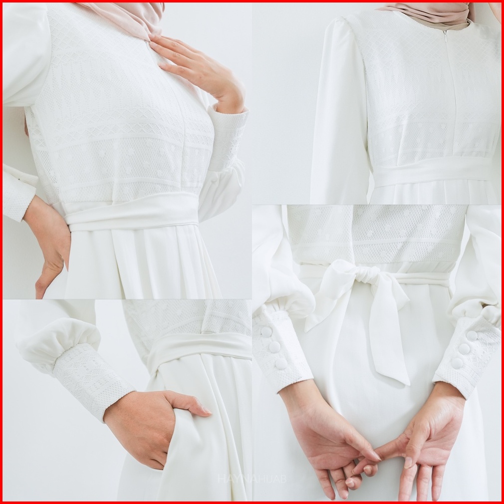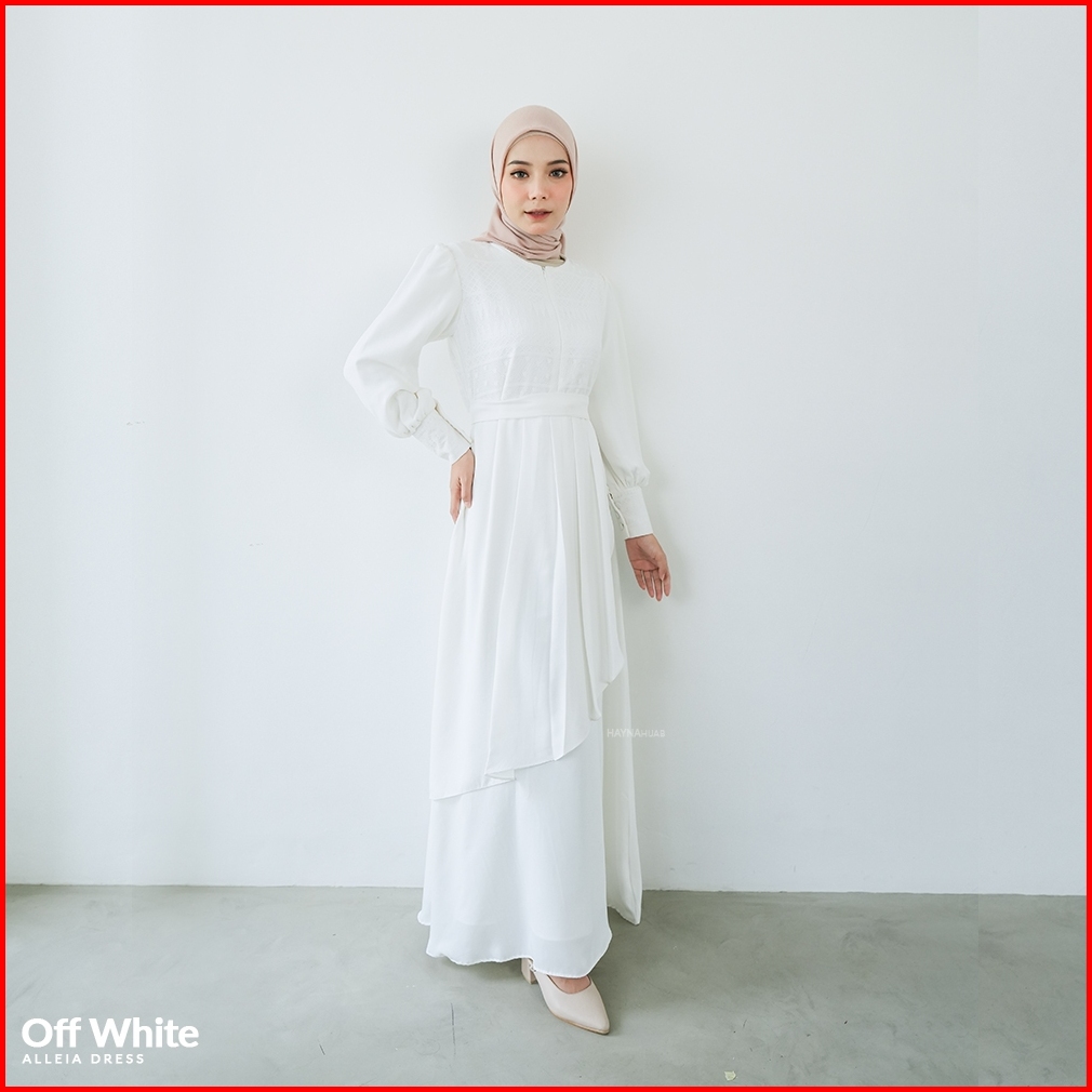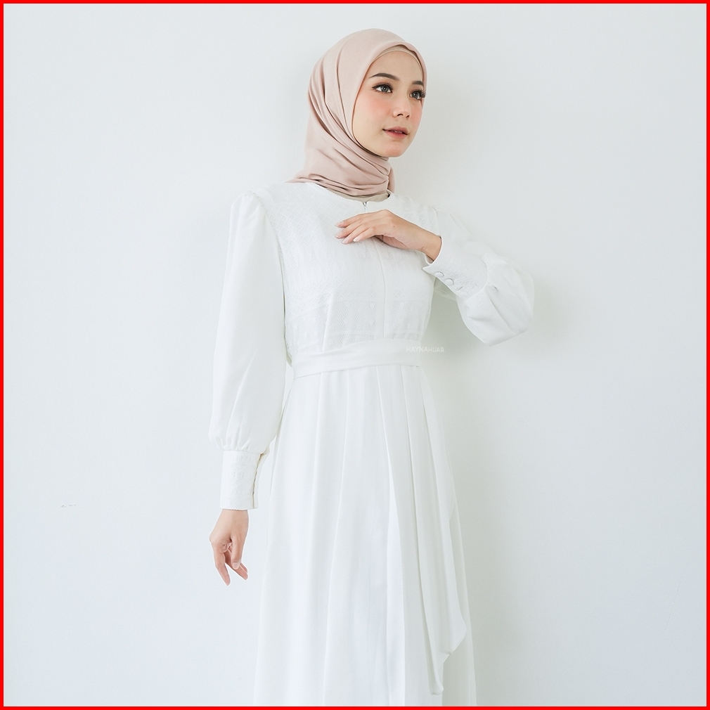 Hayna Alleia Dress Off White - Dress Kondangan Busui Friendly Gamis Wanita Muslim