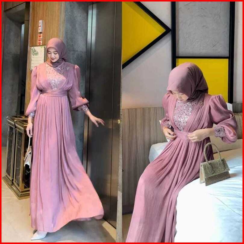 Jovana Dress Shimmer Busui Friendly Gamis Kondangan Fashion Muslimah Wanita Terbaru 2024 Dress Gamis Impor Trend Kekinia
