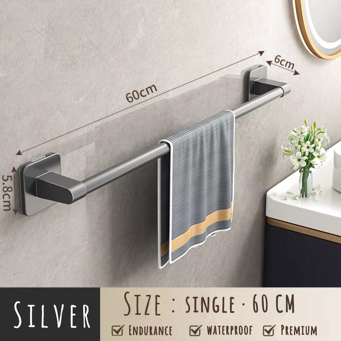 GANTUNGAN HANDUK KAMAR MANDI TANPA BOR / TOWEL RACK KIRAIYA R006 - SINGLE - 60 CM