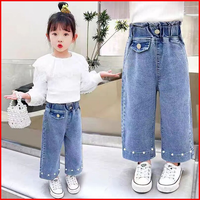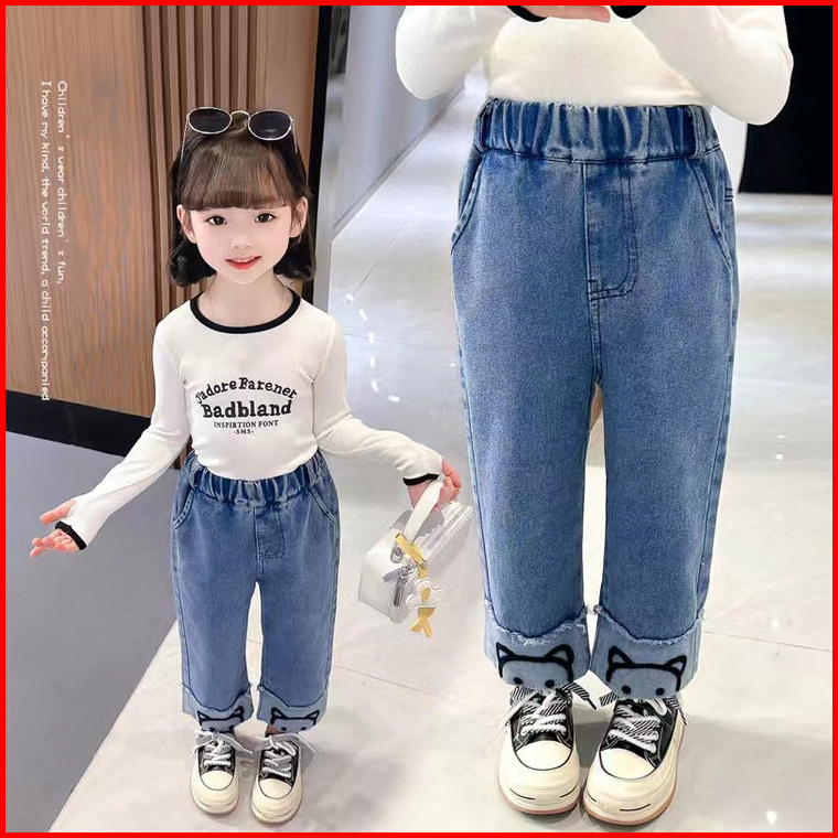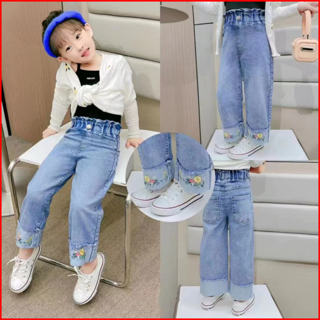 Celana Jeans Kulot Anak Perempuan Celana Panjang Import Jeans Bordir Bahan Katun Usia 2-5tahun