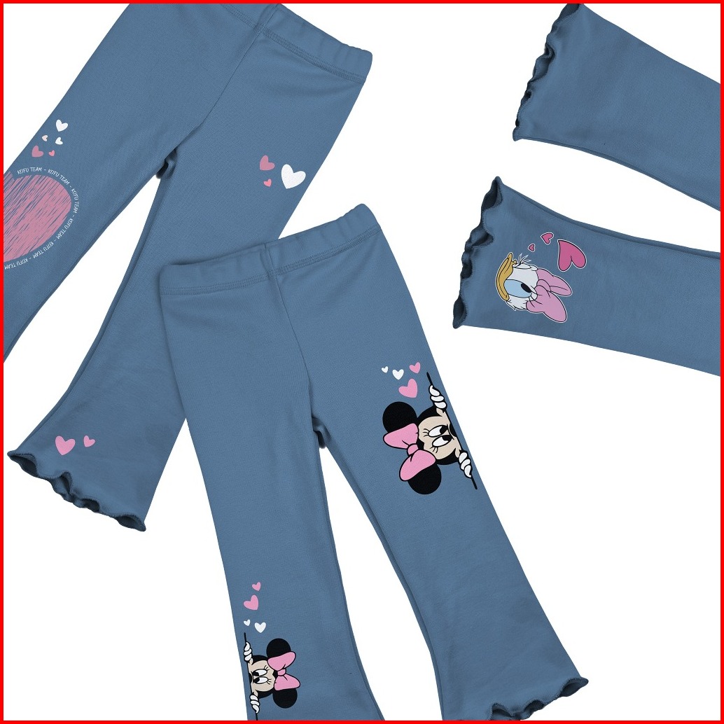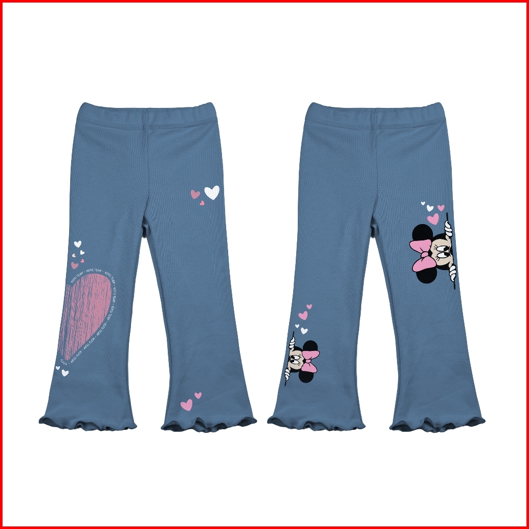 Kofu Kids - Celana Anak Legging Flare Bahan Cotton Rib Spandek Tebal Casual Warna Blue Jeans