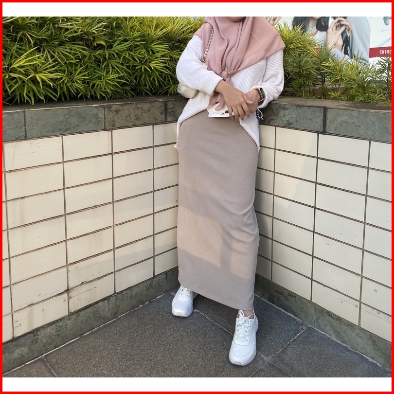 Guzel Moda - Rok Span Guzel Rok Span Knit Premium Panjang Katun Stretch Rok Span Tebal Tidak Terawang Rok Span Jumbo Ker
