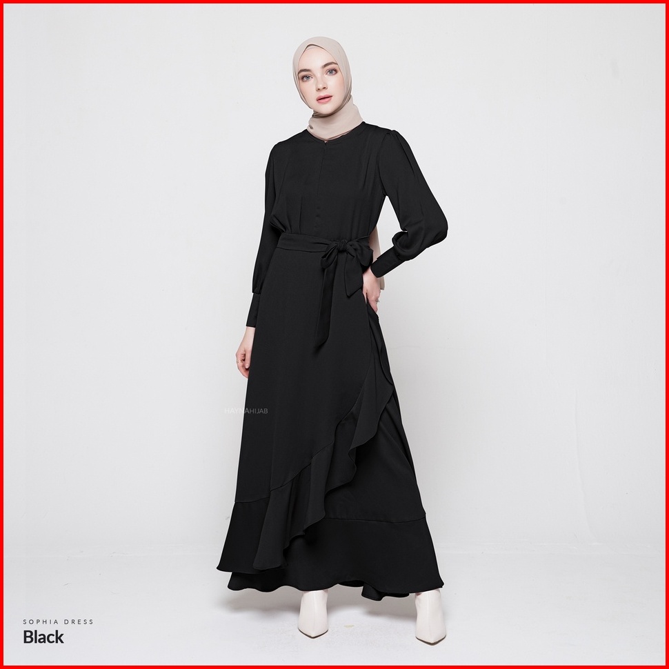 Hayna Sophia Dress Black - Dress Kondangan Daily Dress Busui Friendy Korean Style Gamis Wanita Muslim