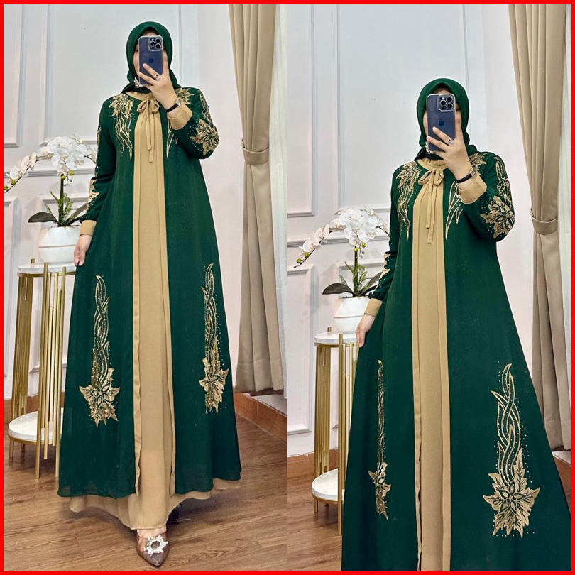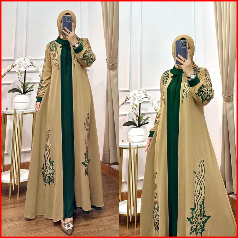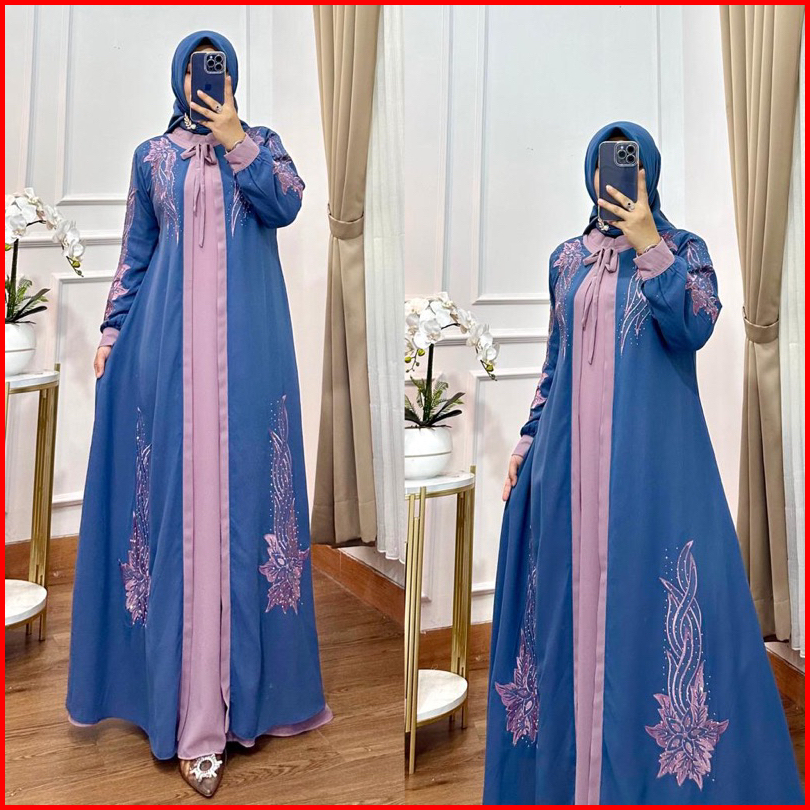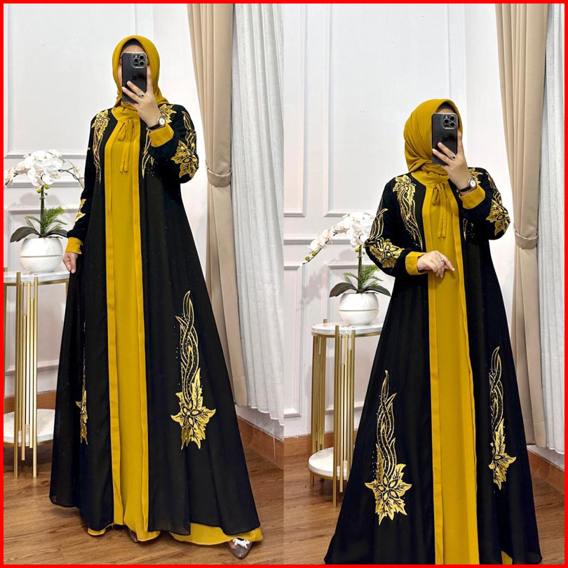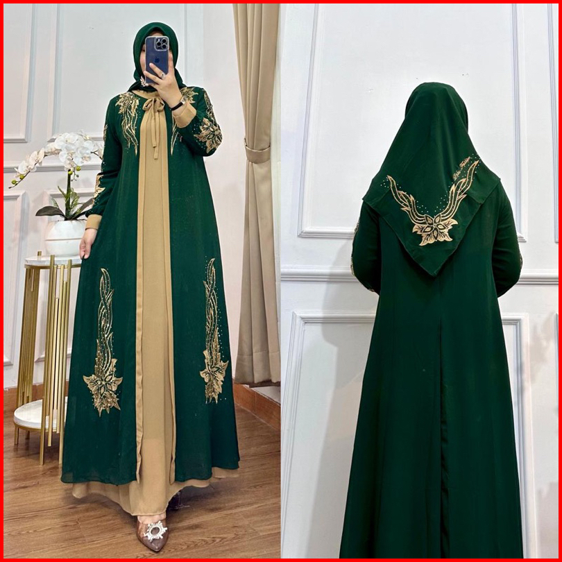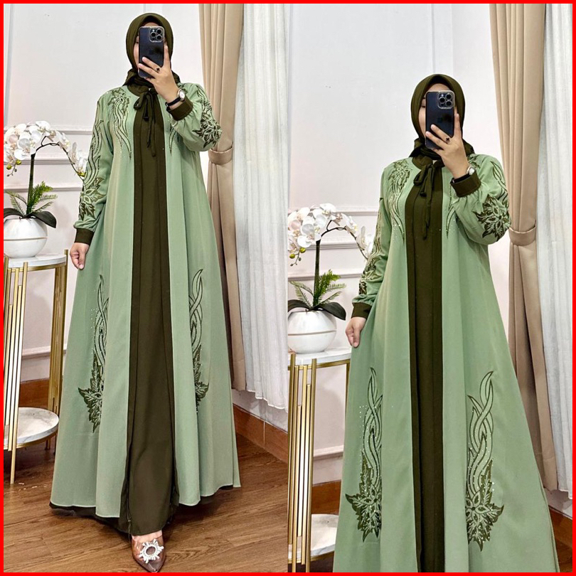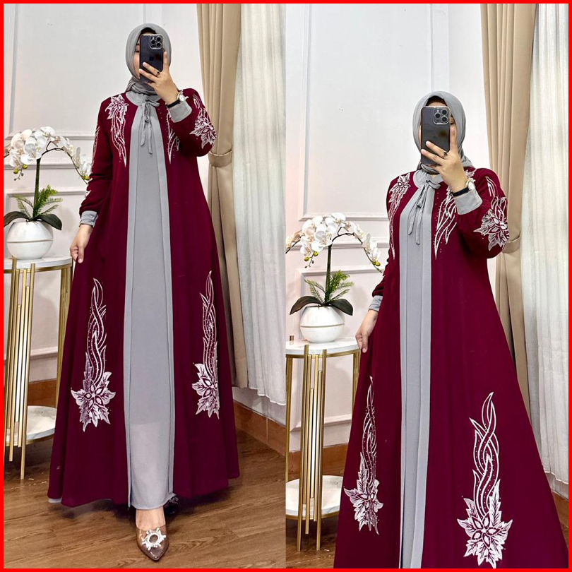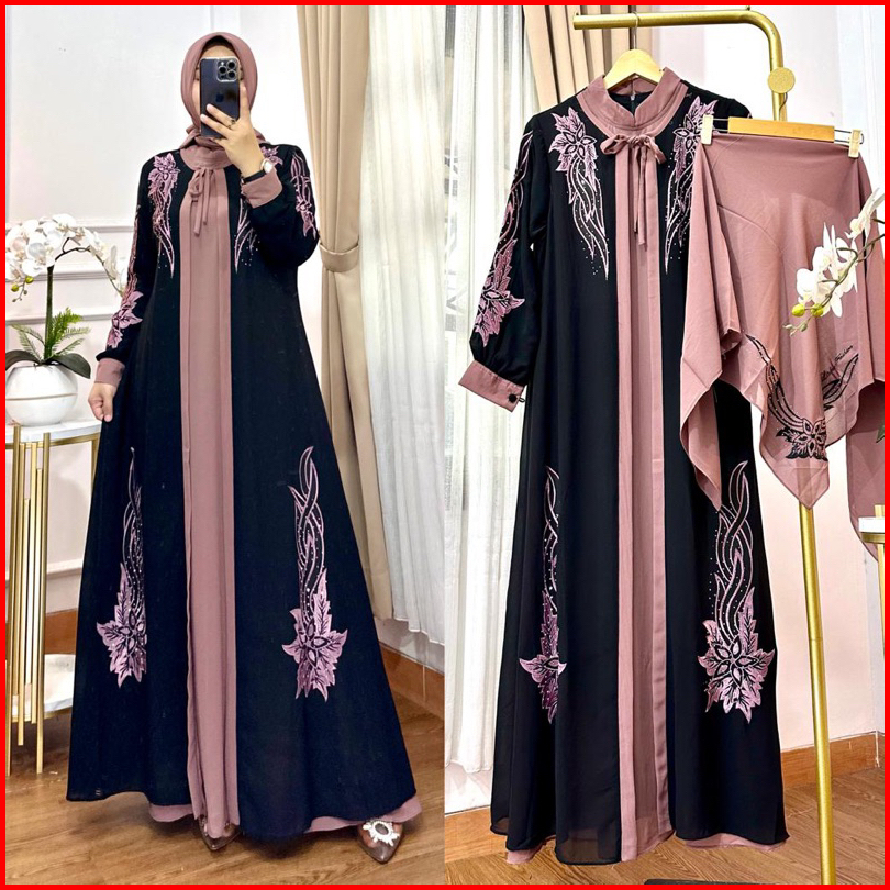 Gamis Aqilla Bordir Kombinasi Bahan Ceruty Premium Set Kerudung