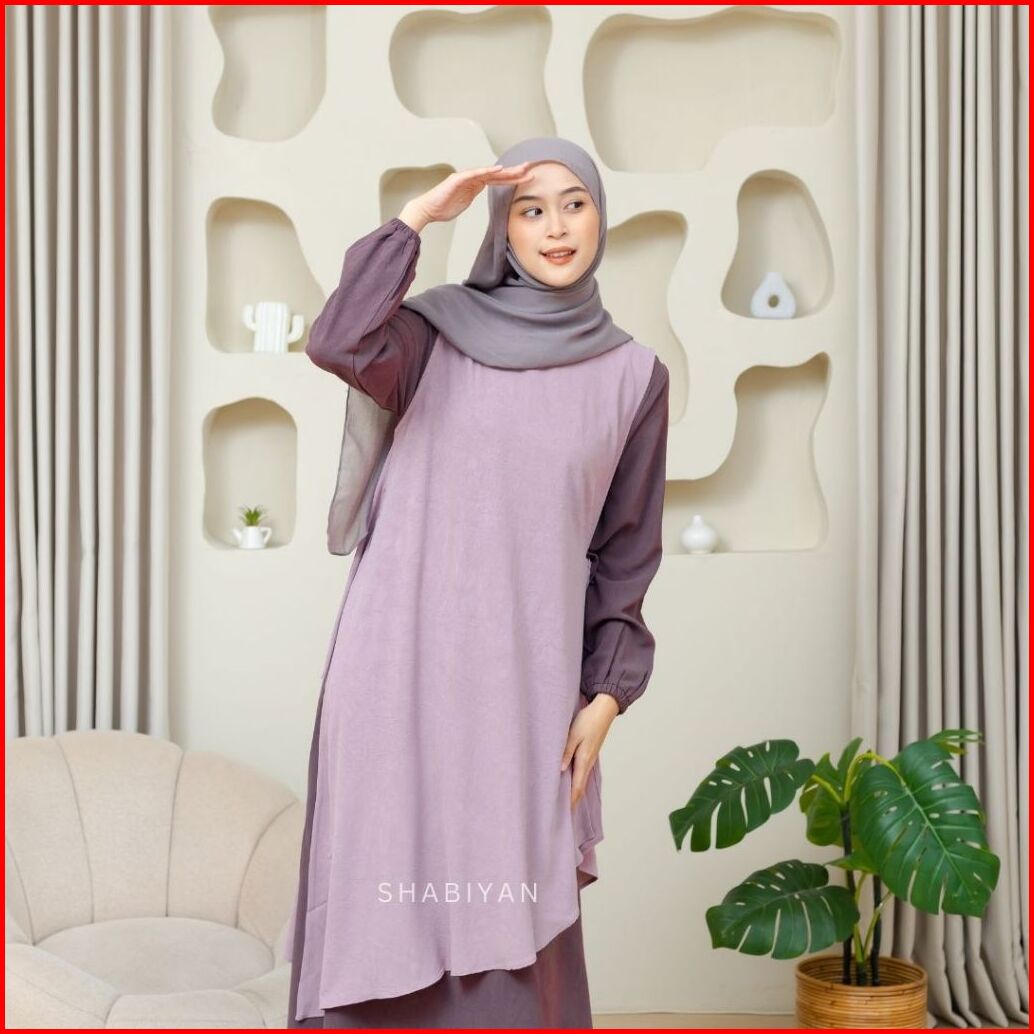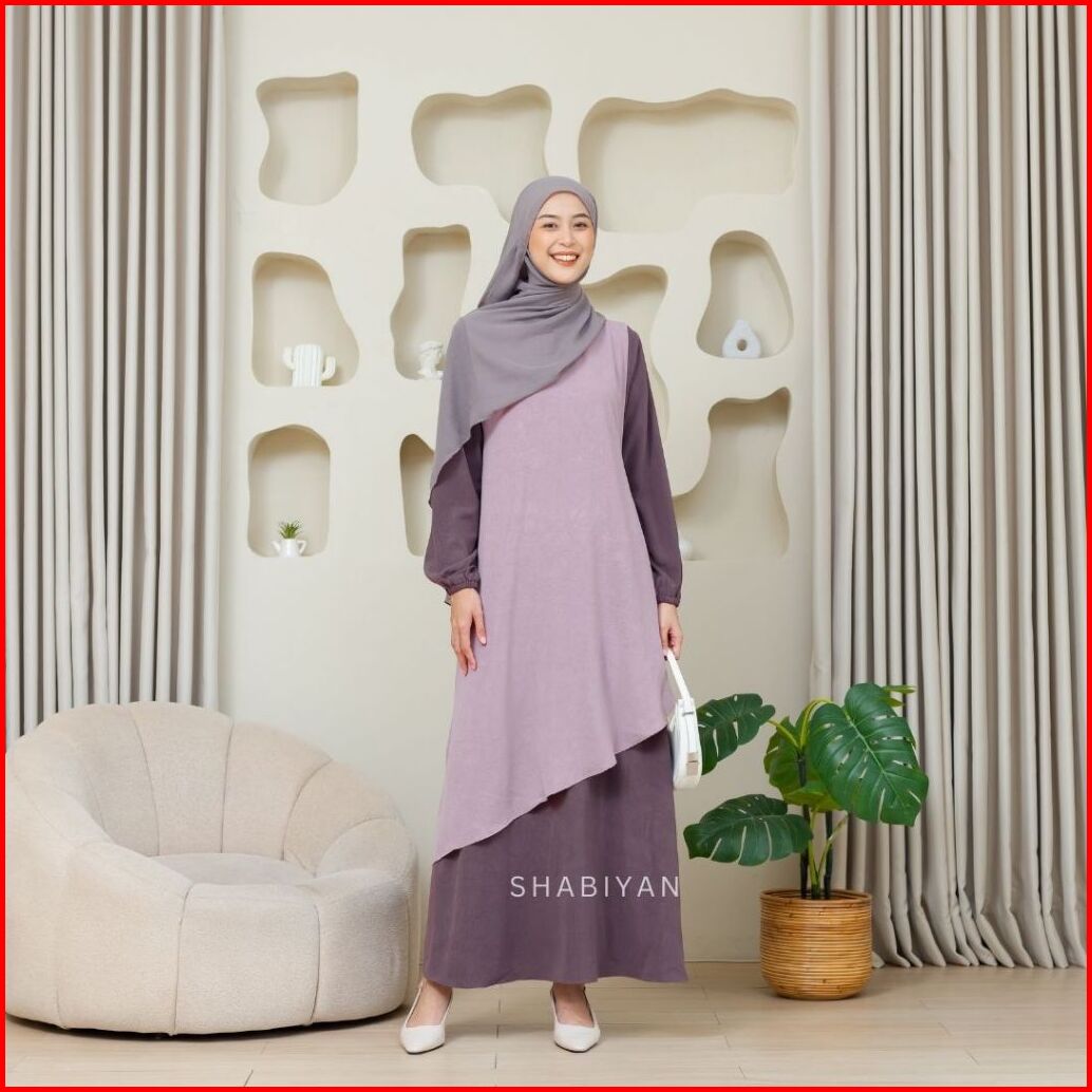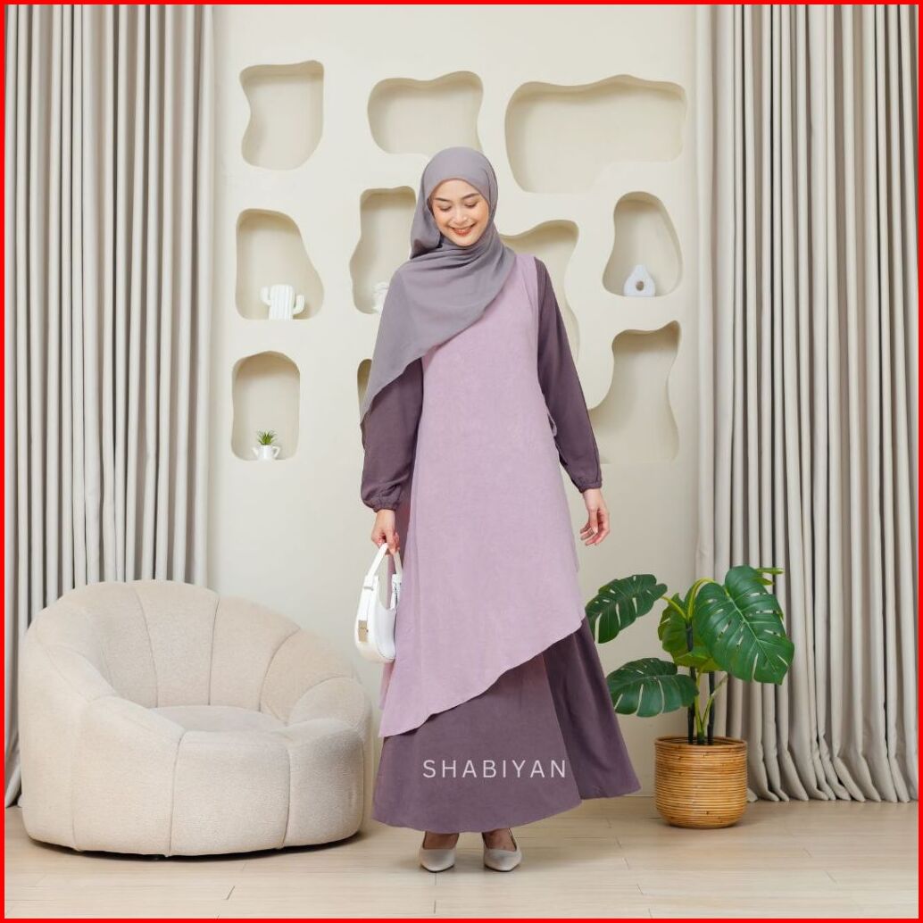 Shabiyan 456 Gamis Set Dress Muslimah Casual Outer Inner Dress Xania