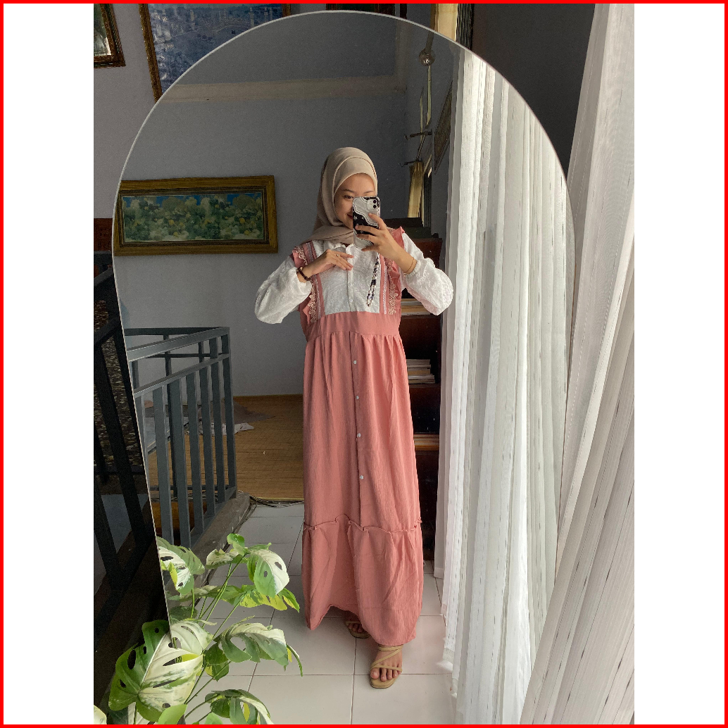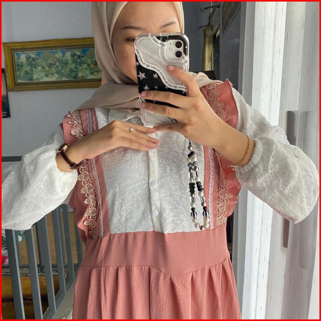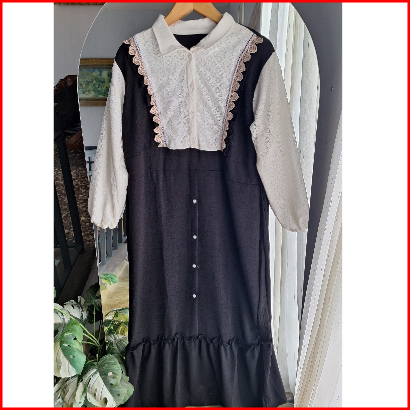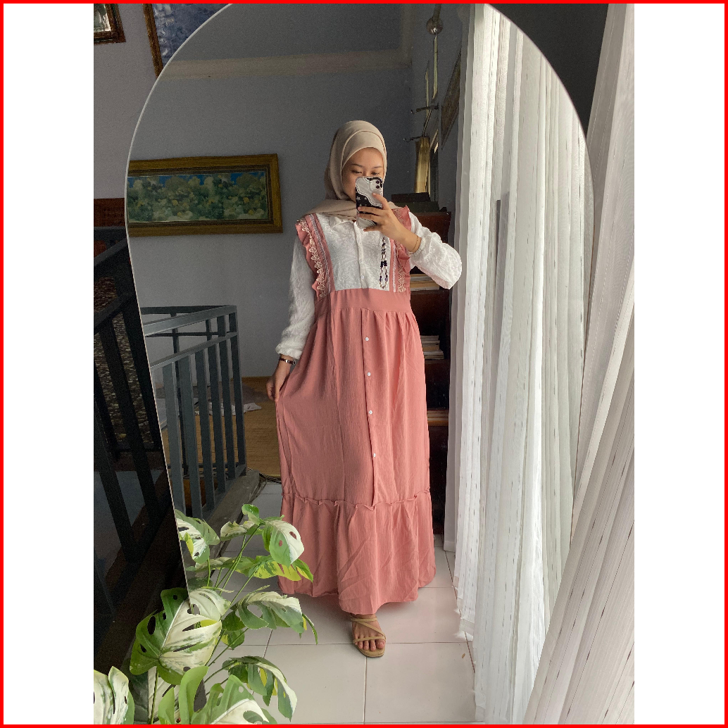 Kafee - Gamis Candy Crinkle Mix Brukat Renda Dress Kondangan Mewah Elegant Gamis Daily Maxi