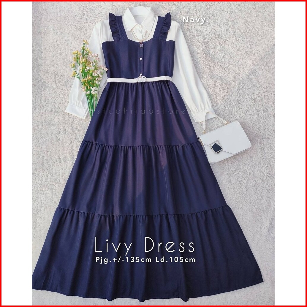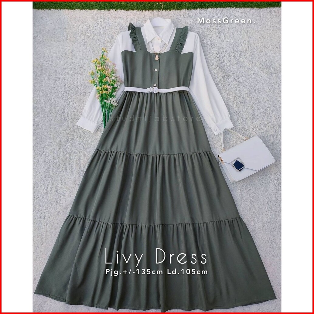 Baju Gamis Wanita Terbaru Livy Dress Gamis Remaja Kekinian Korean Style Busui Free Belt Frz