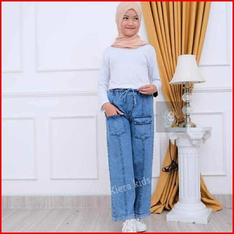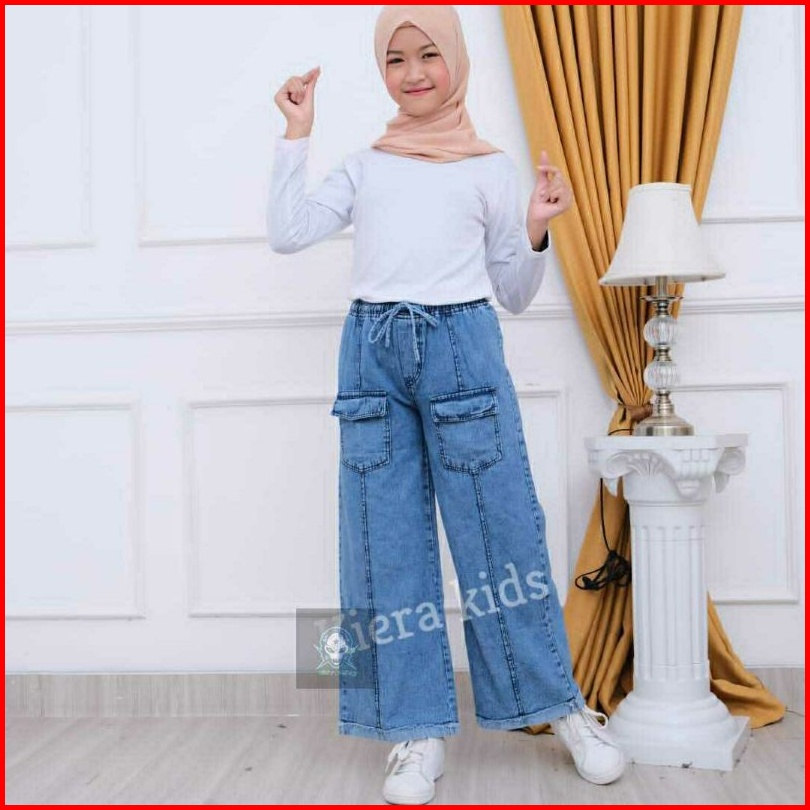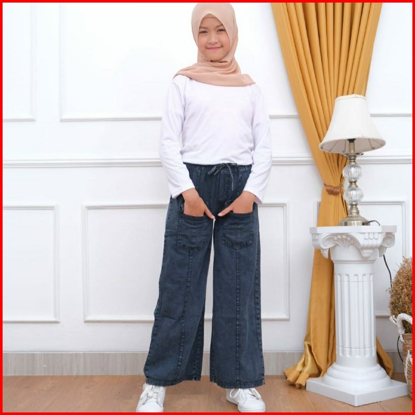Celana Kulot Anak Perempuan Usia 6-13 Thn Celana Panjang Anak Kantong Depan Celana Kulot Jeans Anak Model Kantong Terbar