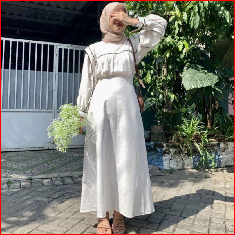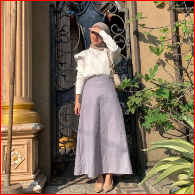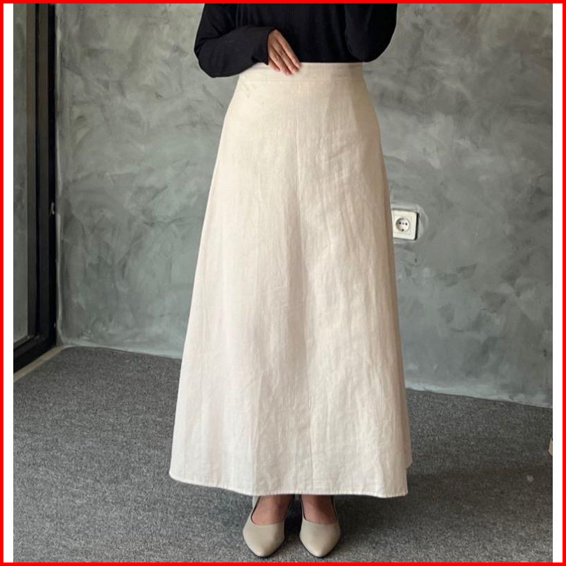 Hundji Skirt - Rok Korean Style A Line Rok Kerja Wanita Putih Tulang Jumbo
