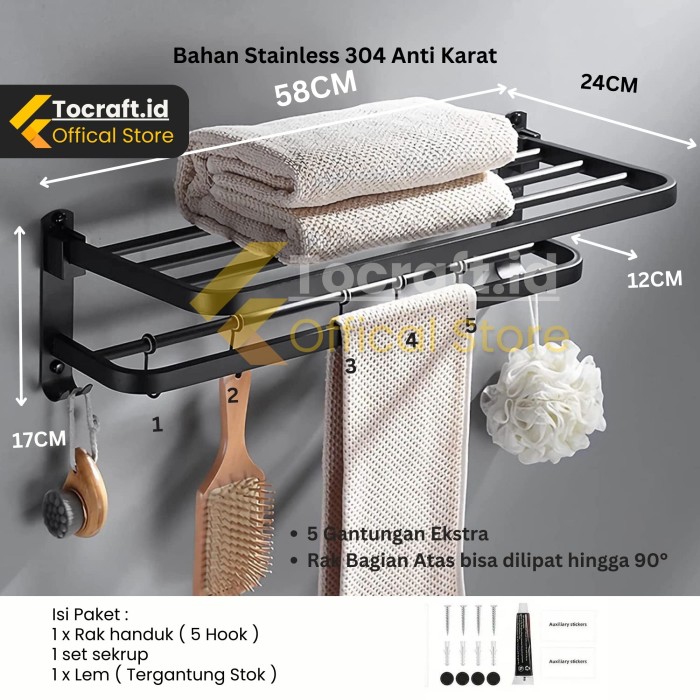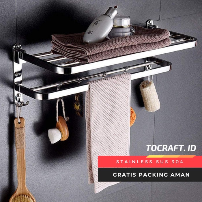 TCID RAK HANDUK STAINLESS 304 GANTUNGAN HANDUK TEMPEL KAMAR MANDI - SILVER 1TINGKAT