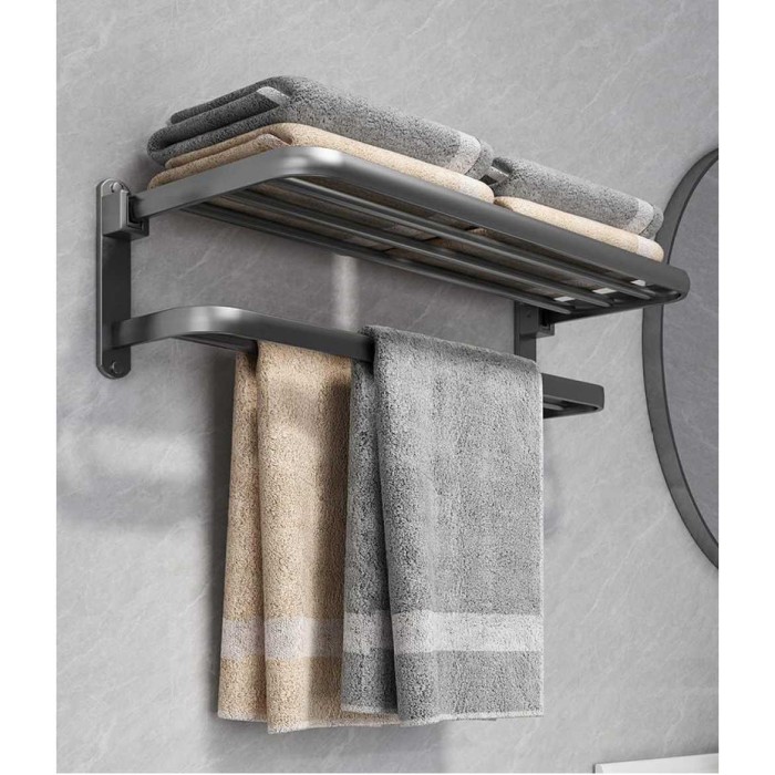 RAK GANTUNGAN HANDUK KAMAR MANDI BATHROOM TOWEL HANGER HITAM - GRAY