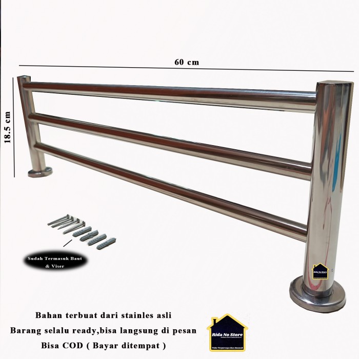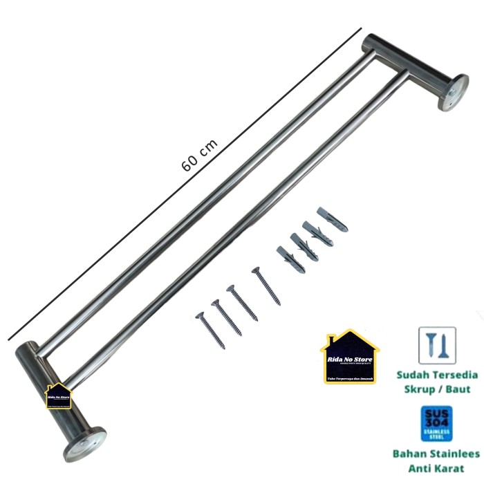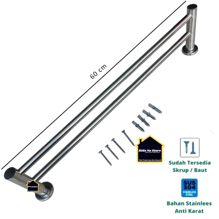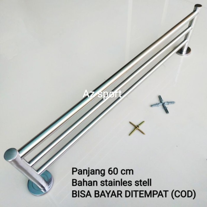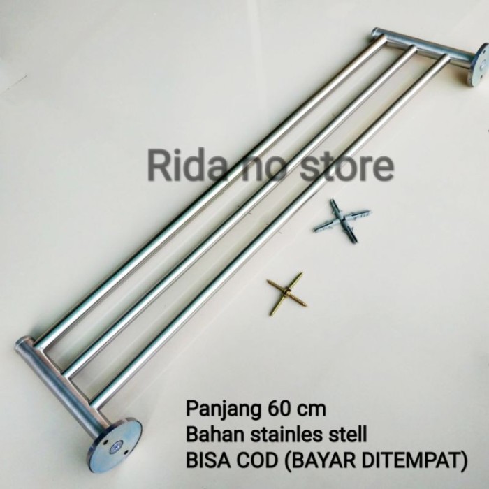 JEMURAN HANDUK DINDING STAINLESS 60CM - GANTUNGAN HANDUK KAMAR MANDI - 2 SUSUN 60 CM