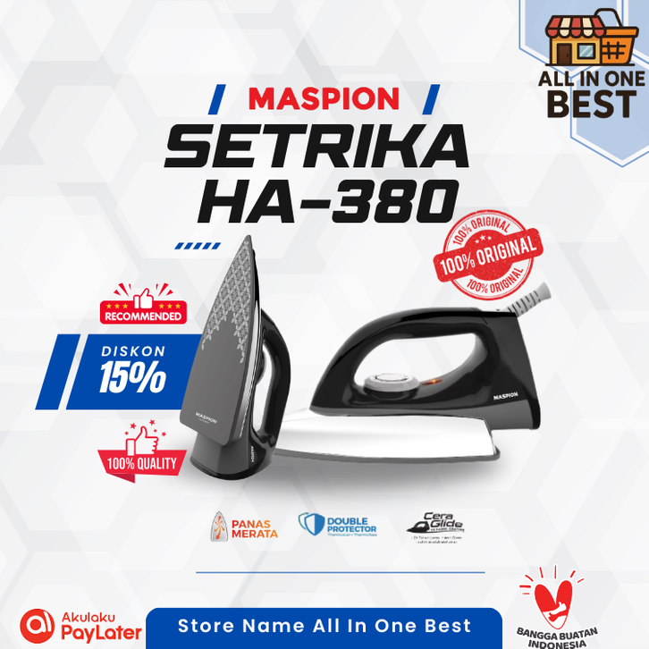 [Mall] Setrika Maspion HA 380 Original Automatic Iron Strika Kering Gosokan Anti Lengket Ceramic Coating Terbaru