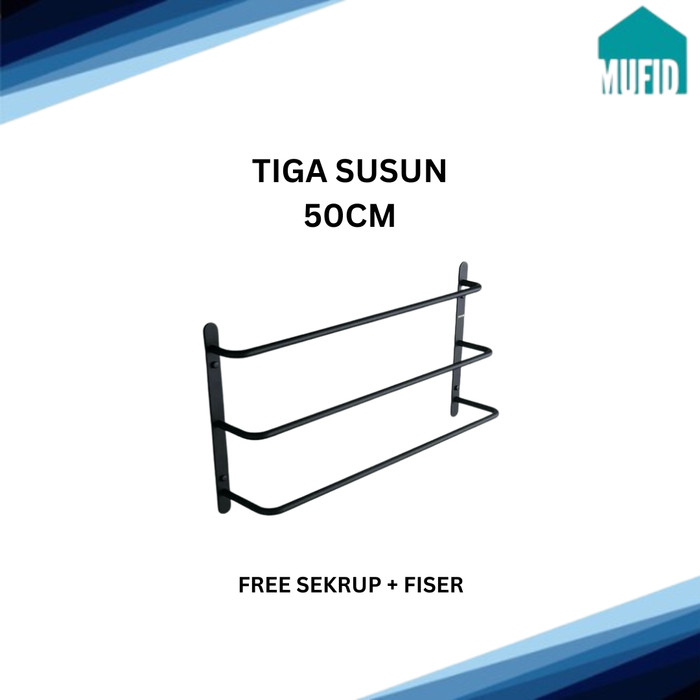 RAK VINTAGE BESI PLAT HANDUK KAMAR MANDI 3 TINGKAT TEMPEL DINDING | - 1 SUSUN 60 CM
