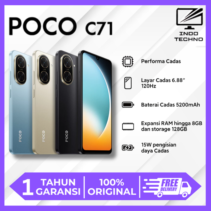 HP 1 Jutaan POCO C71 (4+4GB/128GB) | Layar Cadas 6.88" 120Hz | Baterai Cadas 5200mAh | Expansi RAM hingga 8GB