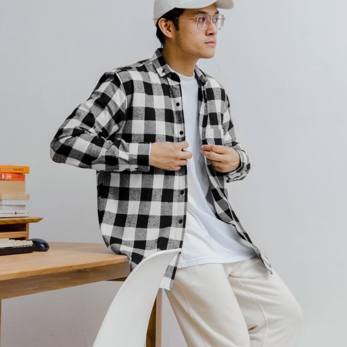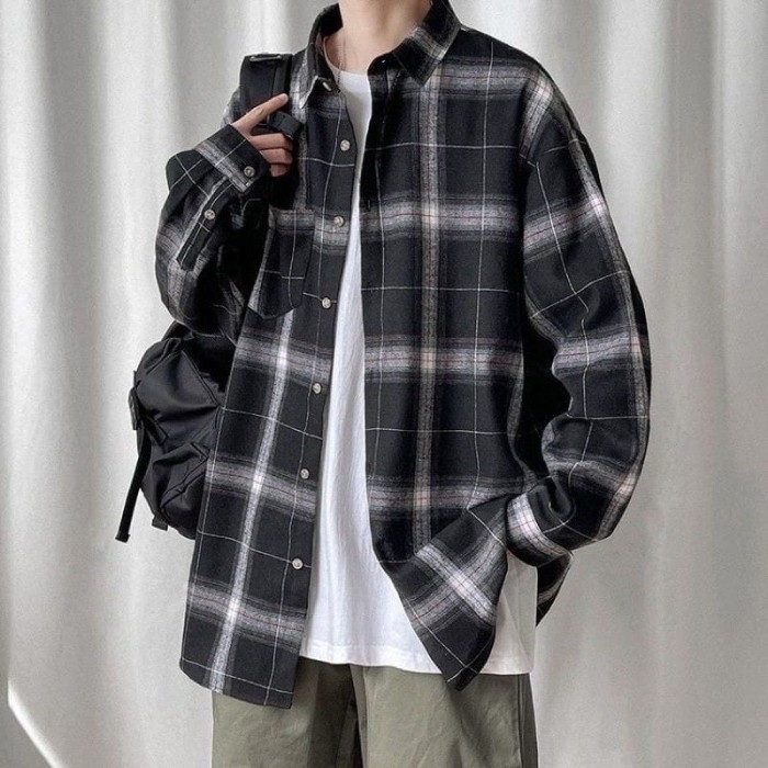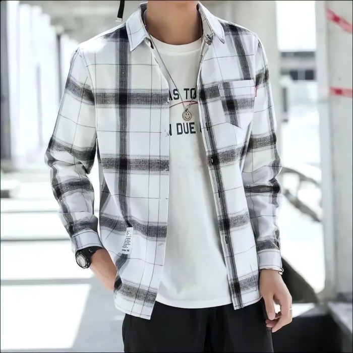 FLANEL IMPOR PRIA LENGAN PANJANG KEMEJA KOTAK KOTAK KUALITAS PREMIUM - RANDOM POLOS, XL