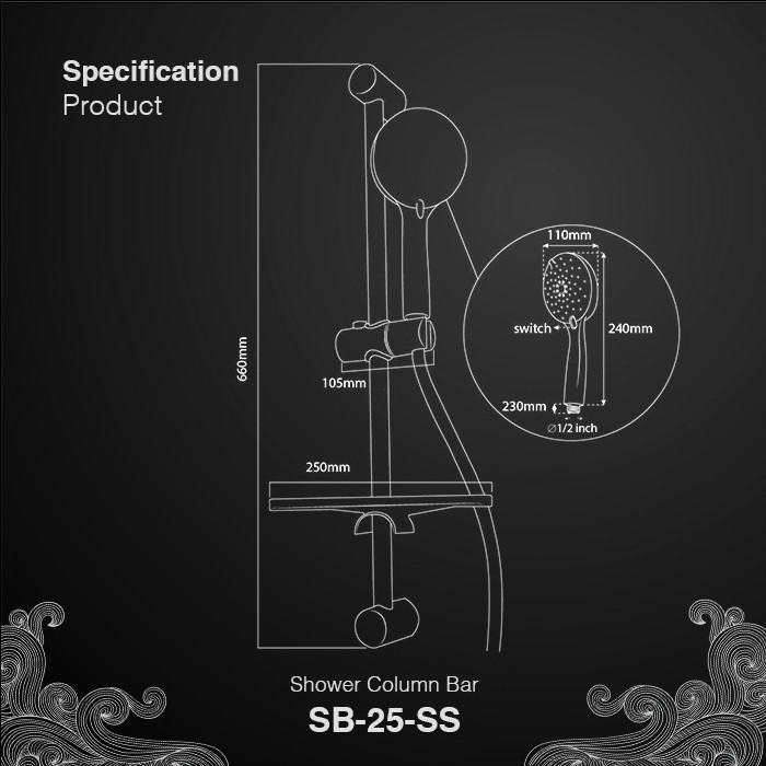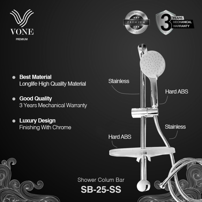 SHOWER TIANG COLUMN MANDI SET RAK SABUN CHROME VONE PREMIUM SB-25-SS