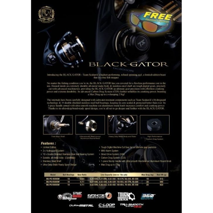 Reel Pancing Spinning Seahawk Black Gator 4500/6500/8000 SW Reel pancing sal water