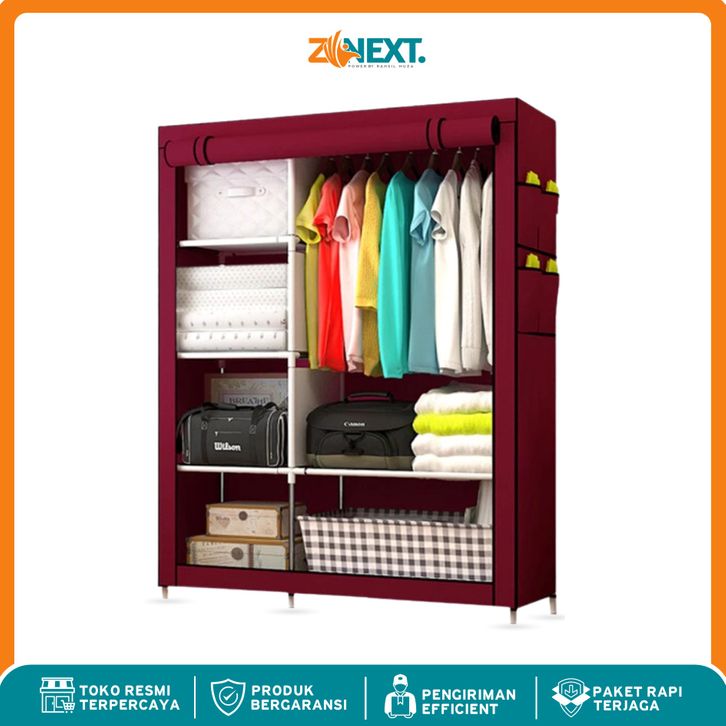 ZANEXT | Lemari Kain Portable 2 Sisi + Gantungan Anti Debu Serbaguna lemari minimalis lemari anak kos