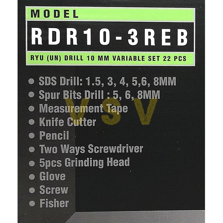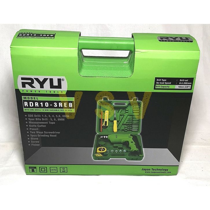 RYU MESIN BOR SET KOPER RDR 10-3 REB 10 mm set 22pc bor set mesin bor 10mm set (ga bisa buat TEMBOK /BETON)