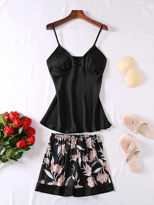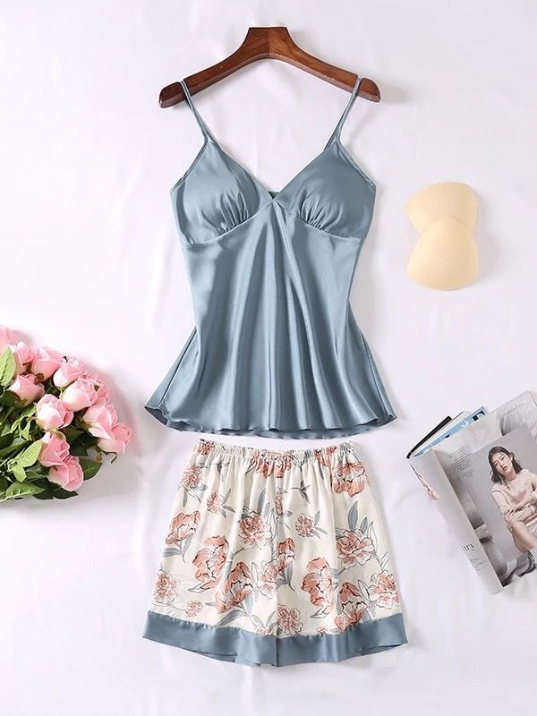Piyama Wanita Dewasa Silky Satin Baju Tidur Sexy Wanita Setelan Baju Tidur Wanita Dewasa Nyaman Tanpa Lengan