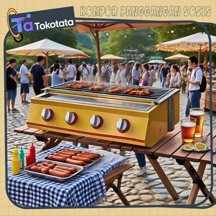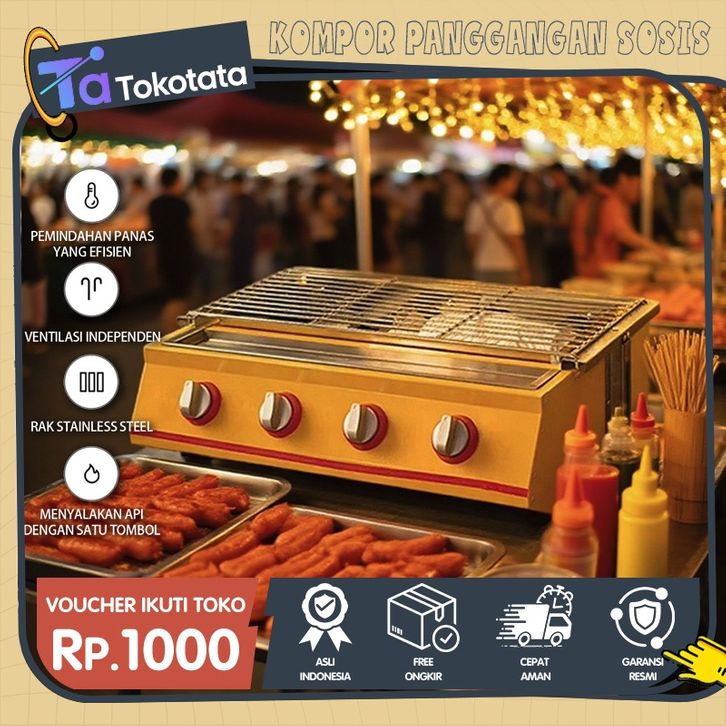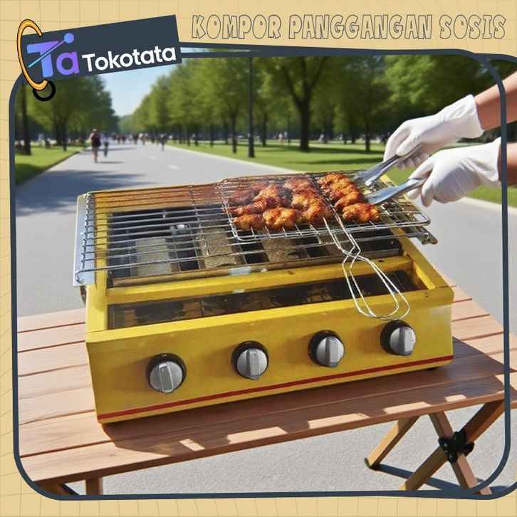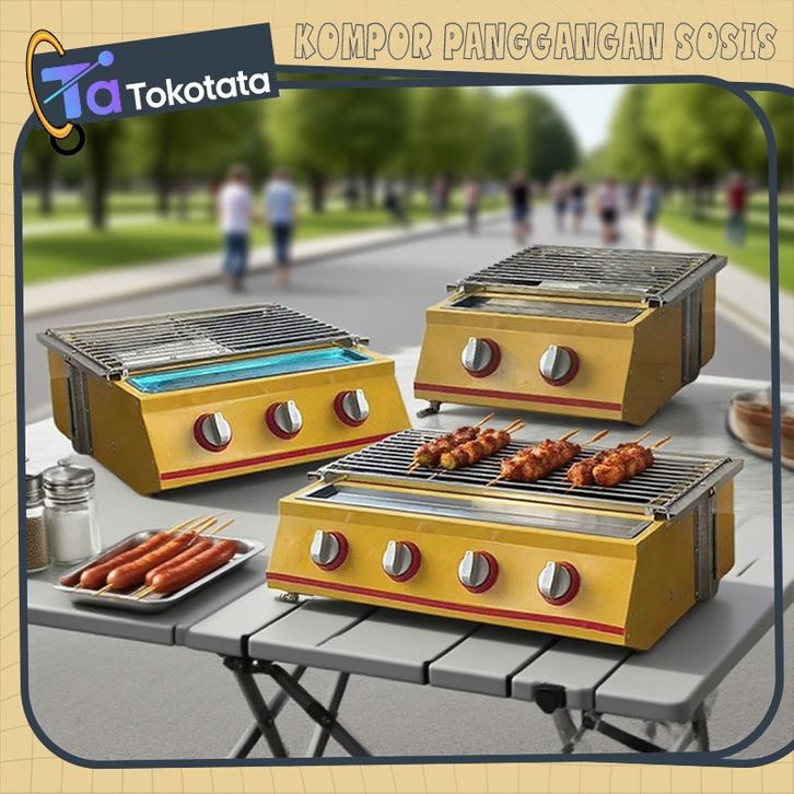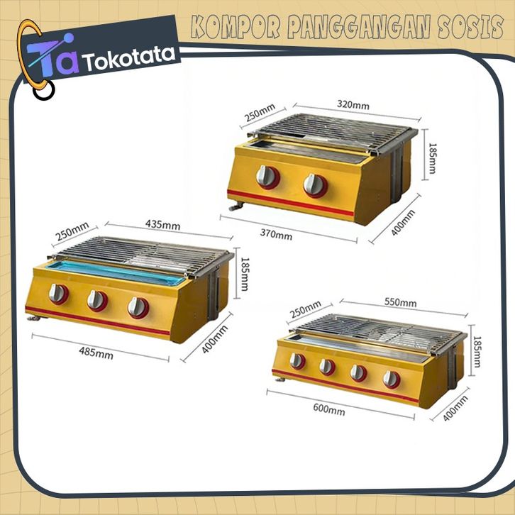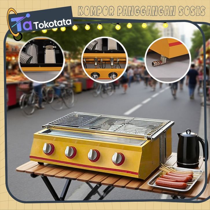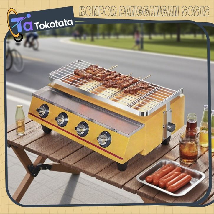 Kompor Panggangan Sosis 2-4 Tungku/BBQ Grill Gas alat pemanggang daging stainles Komersial