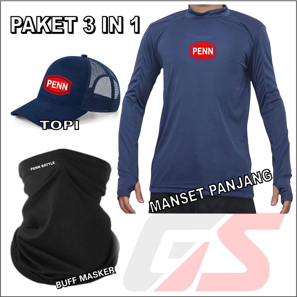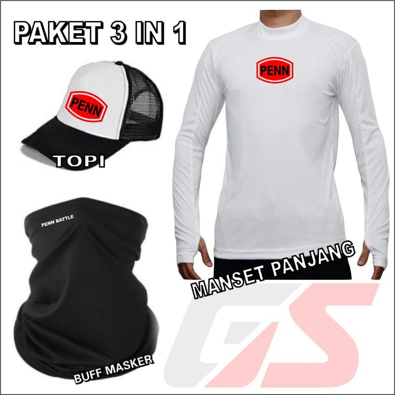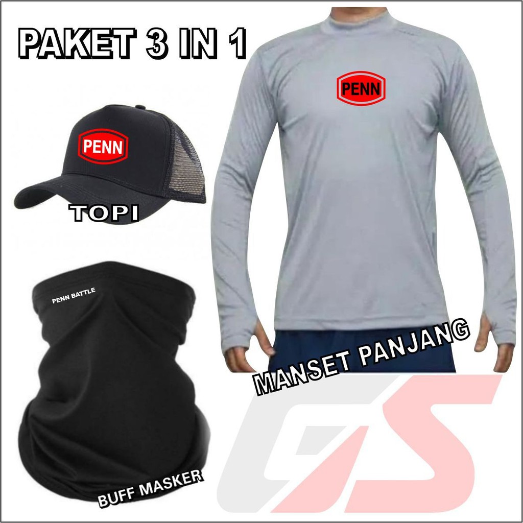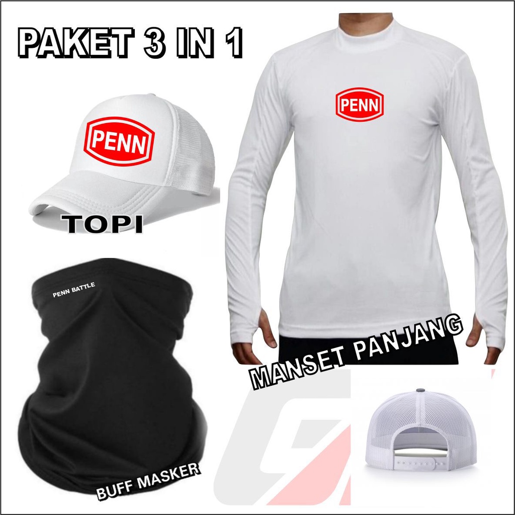 Paket Lengkap Jersey Mancing Topi Mancing Masker Buff Mancing Penn Paket 3 in 1 Perlengkapan Mancing