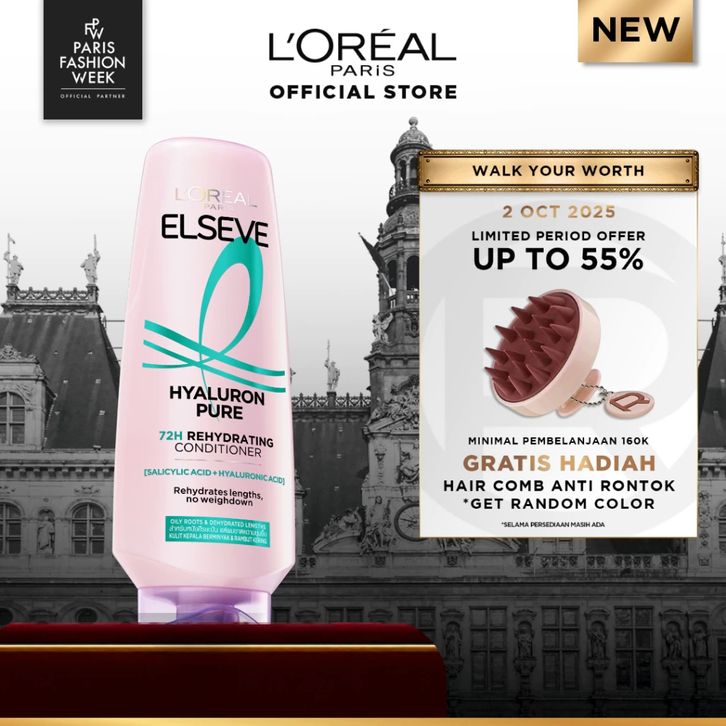 [Mall] Loreal Paris Official Store Hyaluron Pure 72H Rehydrating Conditioner - Perawatan Rambut Bebas Lepek dan Rambut