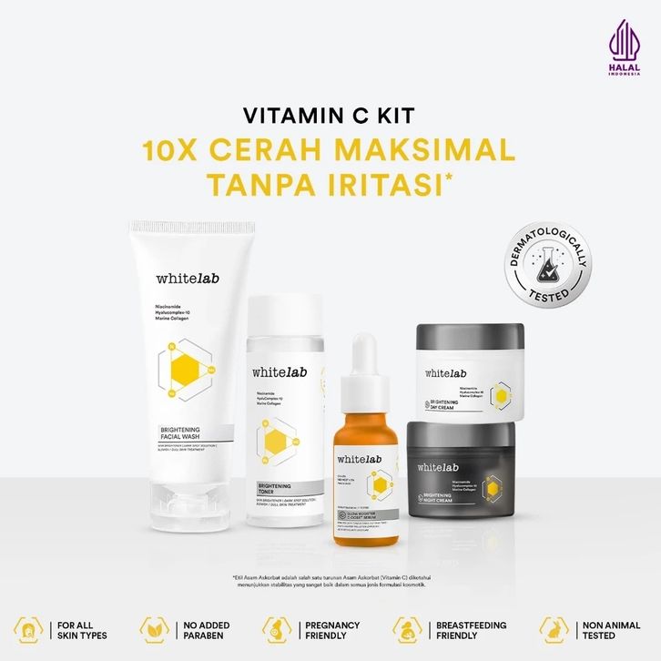 Whitelab 5pcs Brightening Paket Wajah - Facial Wash, Toner, Serum, with Day & Night Cream Paket Skincare