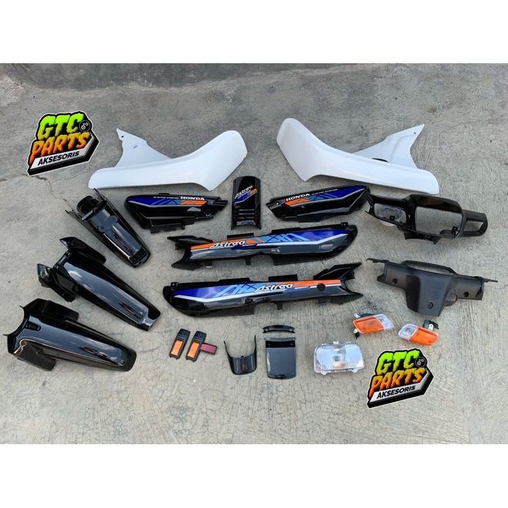 Paket body astrea honda grand sabit impresa legenda set full set sayap striping biru kuning 93