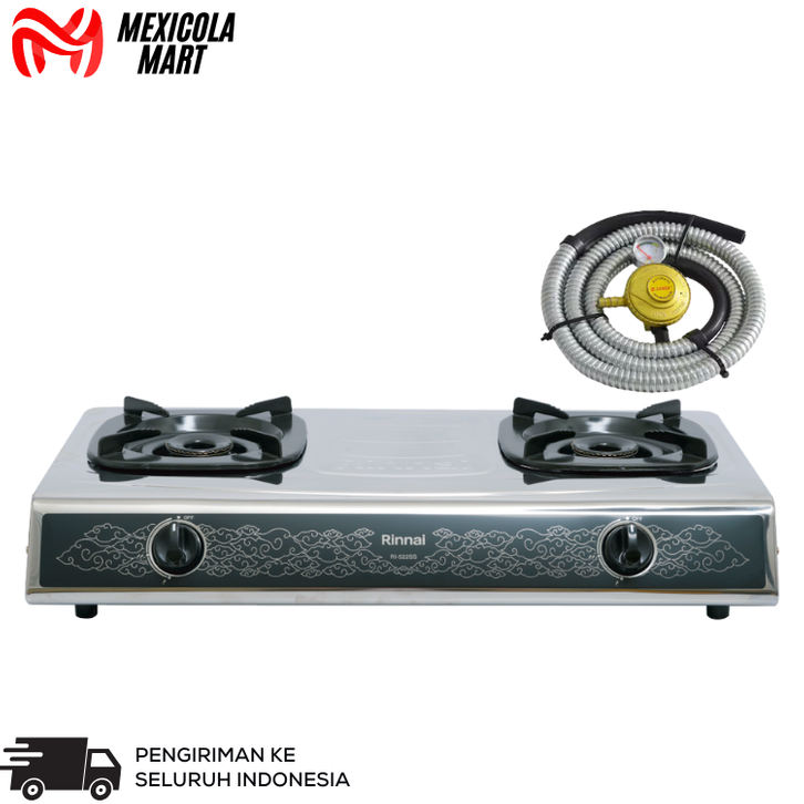 [Star]Kompor Gas 2 Tungku Rinnai RI 522 SS Stainless Motif Batik Sudah Berikut Dengan Selang Regulator