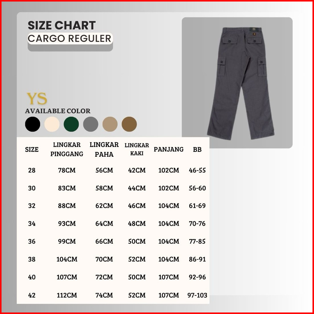Ys Celana Cargo Panjang Pria Original Reguler Fit Standar Gaya