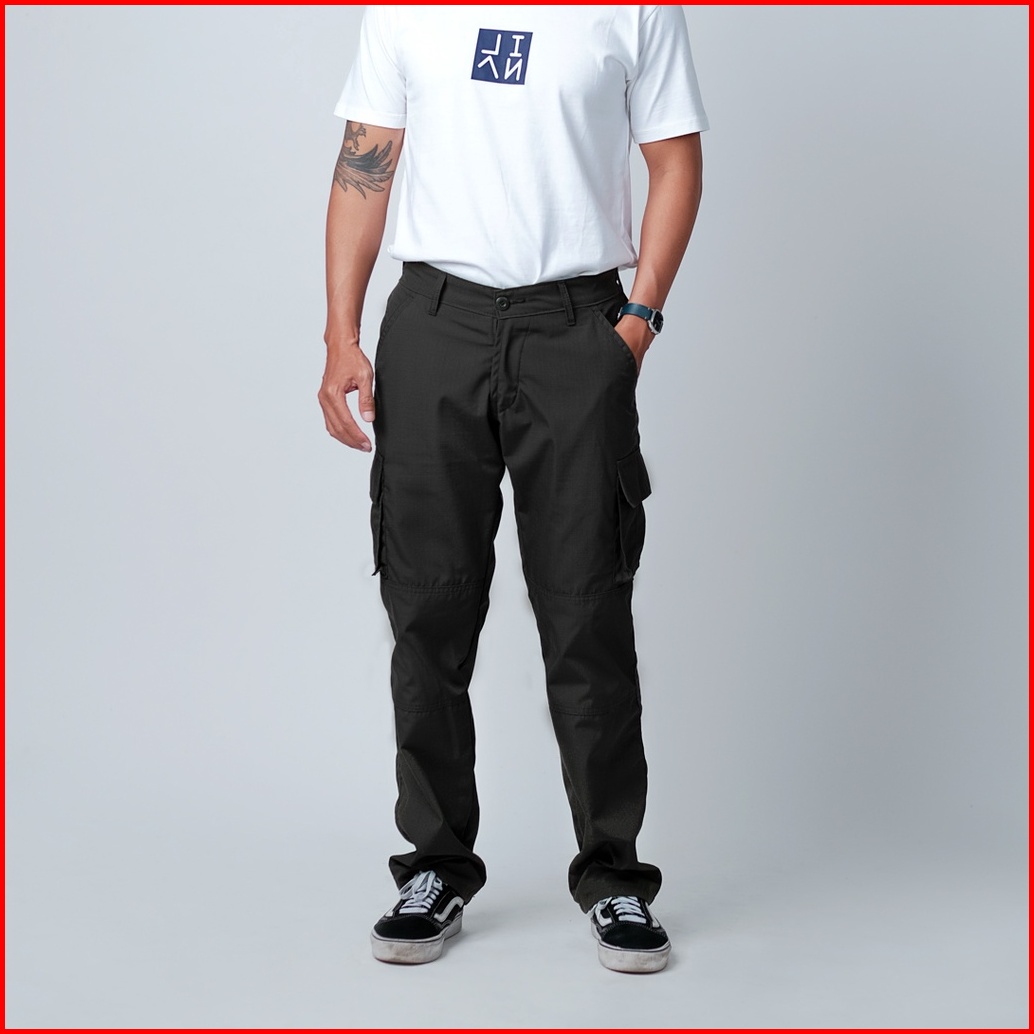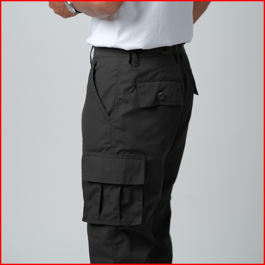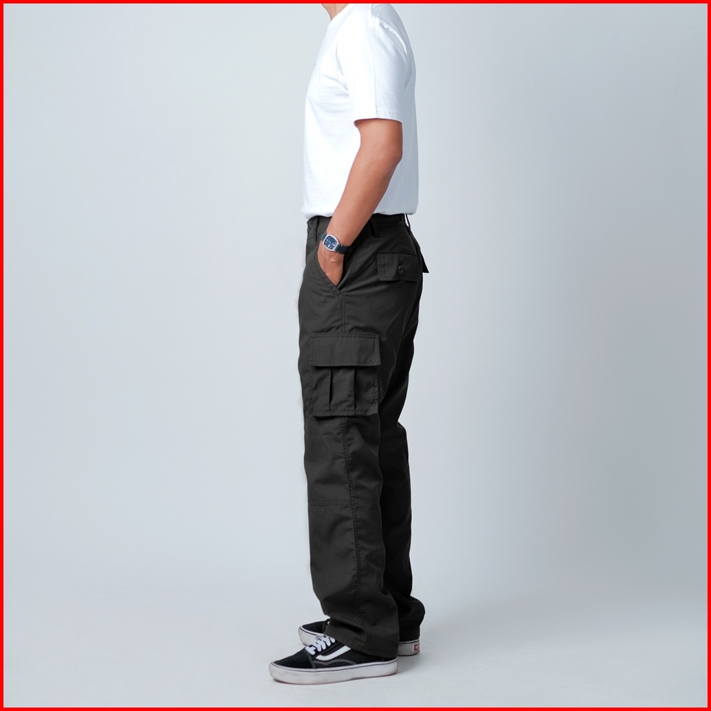 Lian - Loosey Goosey Loose Cut Long Cargo Pants Mid Night Black Ripstop