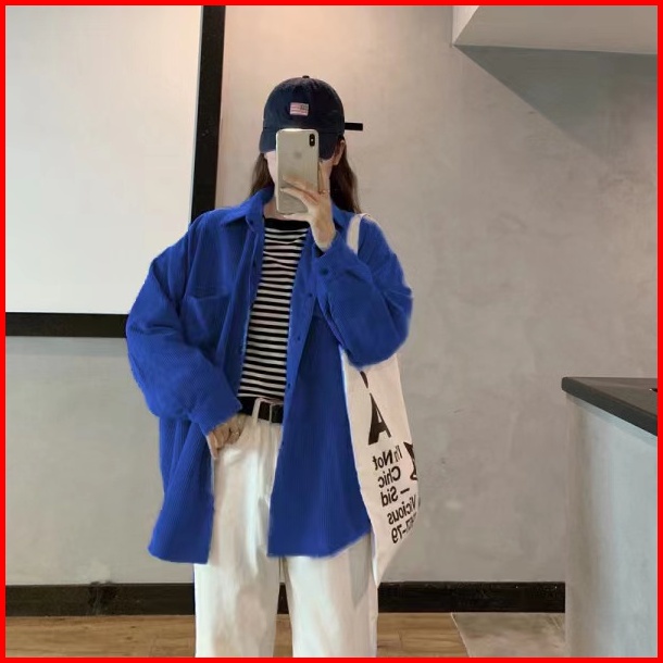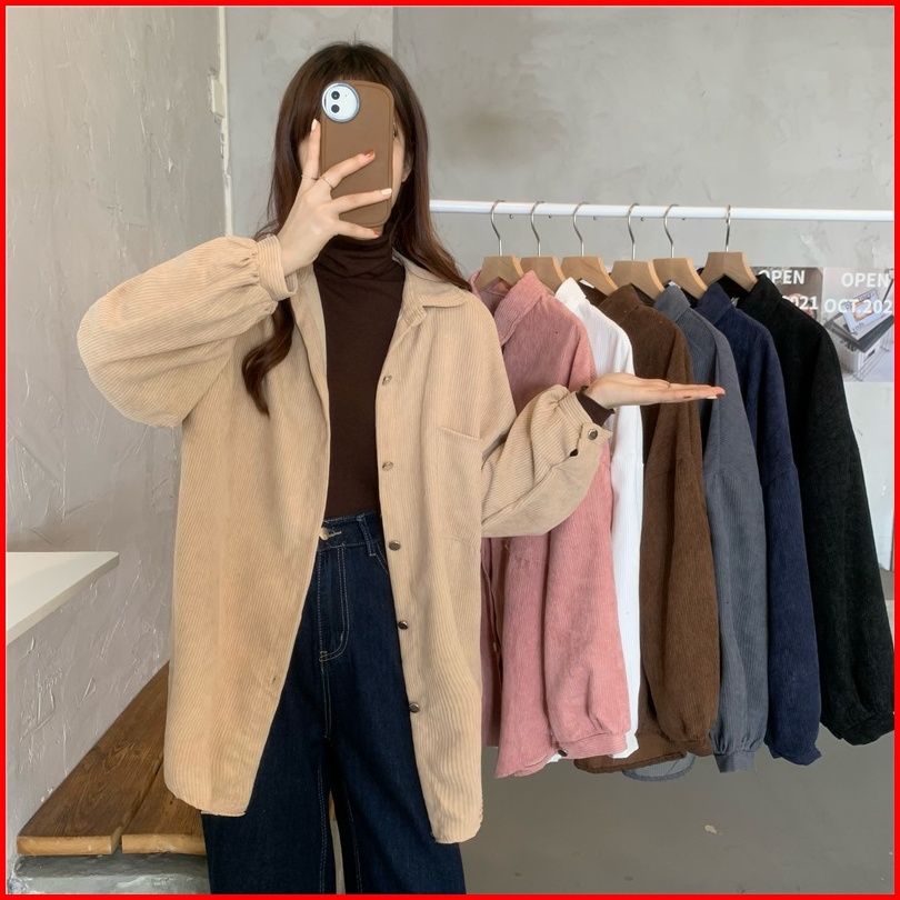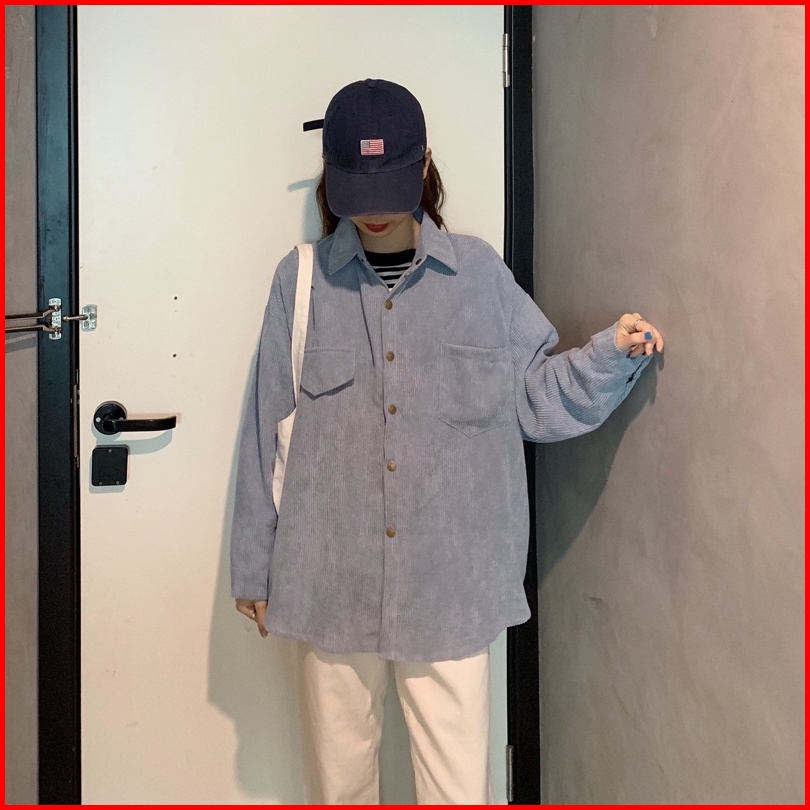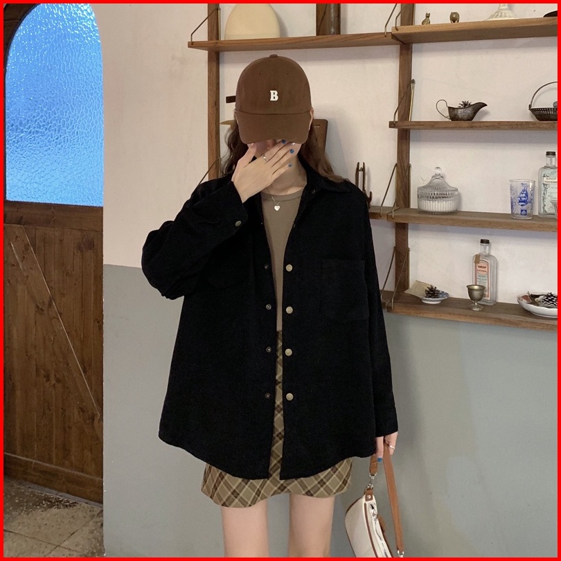 Baju Luar Korduroi Fashion Atas Lengan Panjang Kemeja Longgar