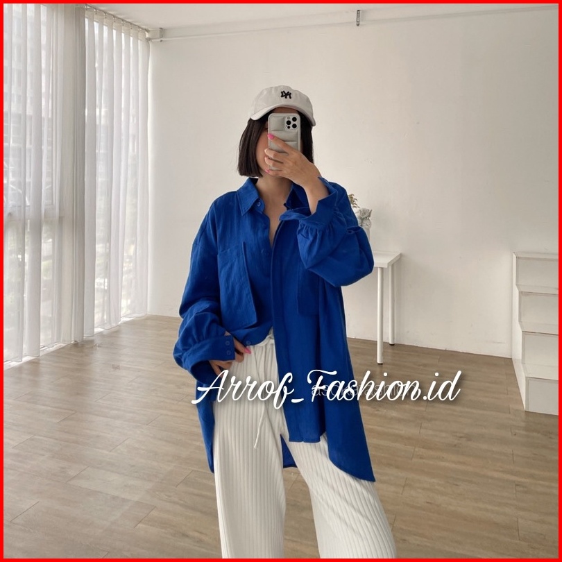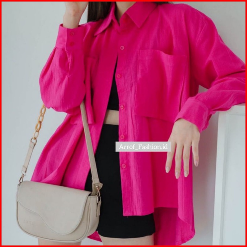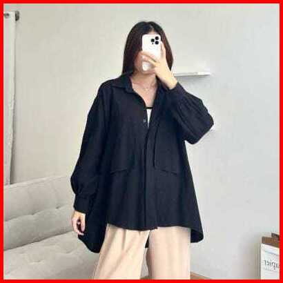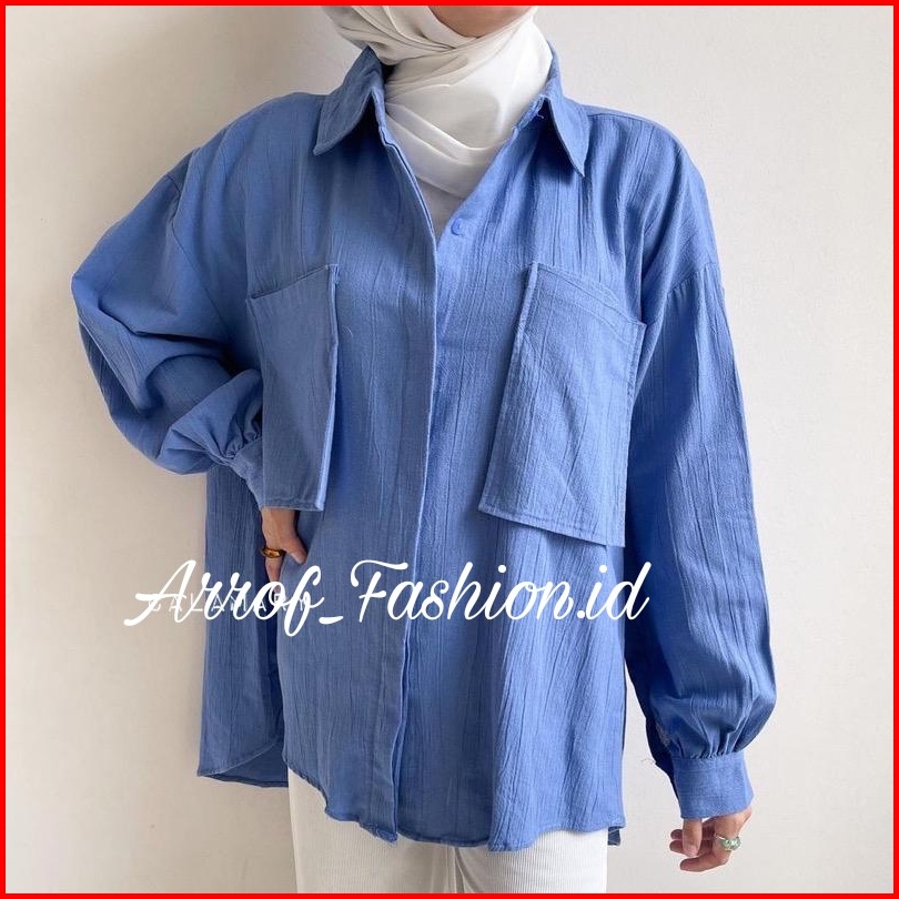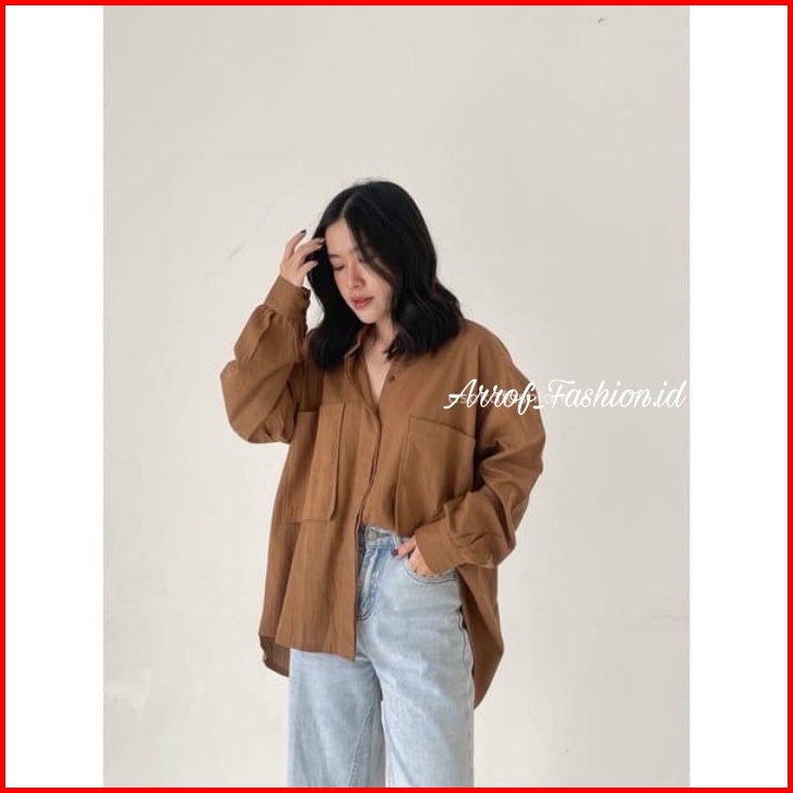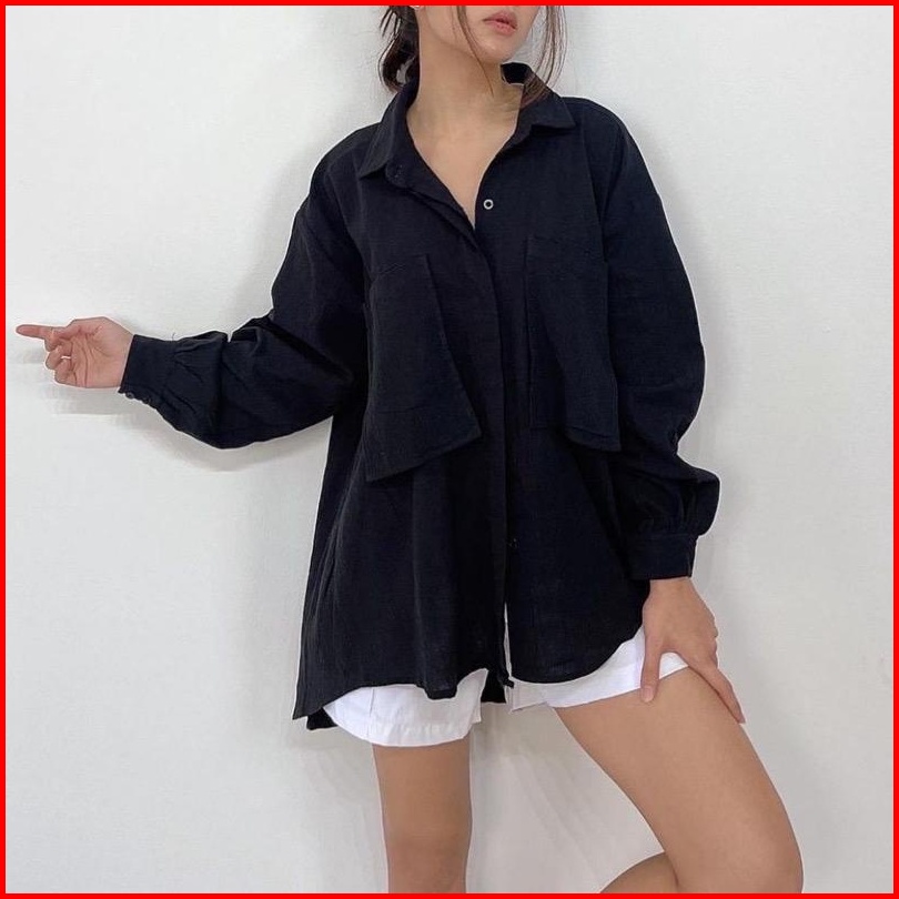 Kemeja Oversize Linen Wanita-linen Crinkle Shirt - Atasan Wanita Lengan Panjang-atasan Kemeja Pocked