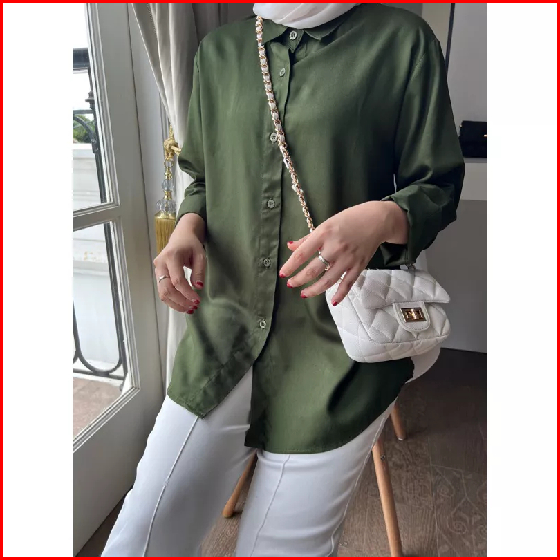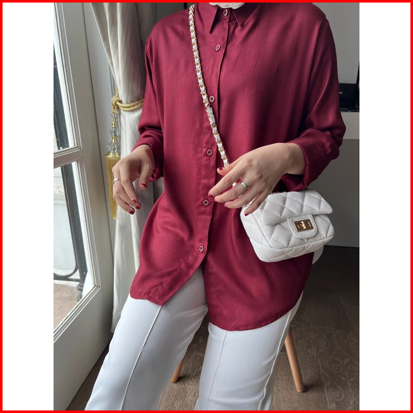 Kemeja Formal Harian Wanita Polos Lengan Panjang Ortega Fashion