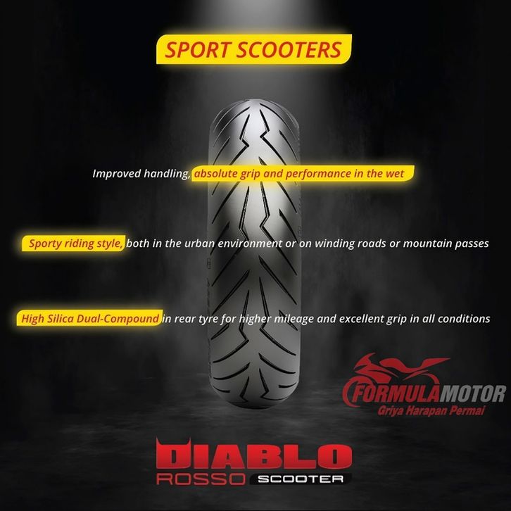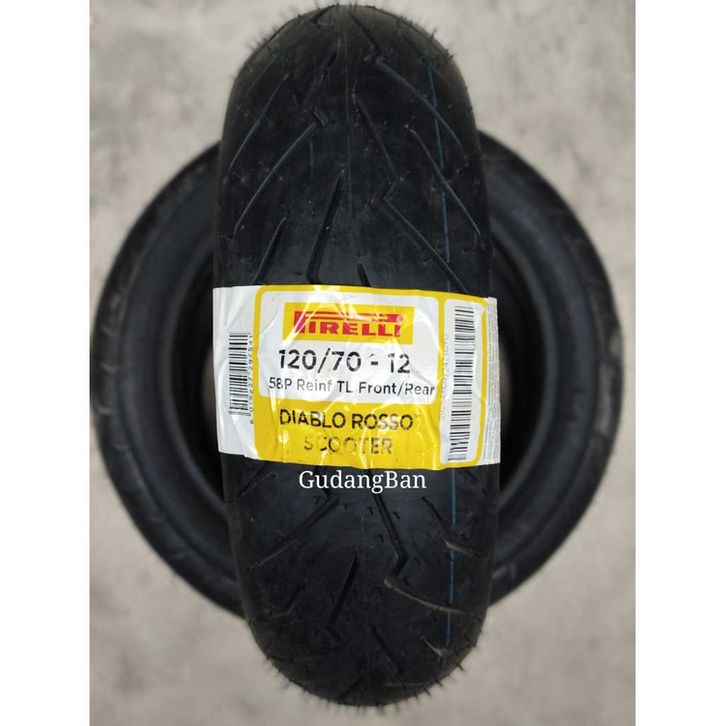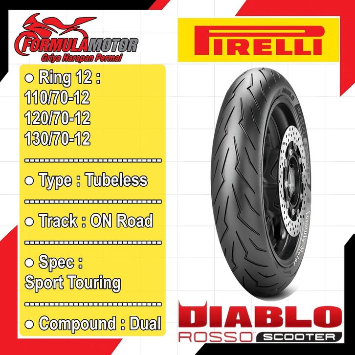 Pirelli Diablo Rosso Scooter Uk 120/70-12 Tubeless - Ban Luar Motor Vespa Primavera, Sprint, GTS Ring 12 Super Premium